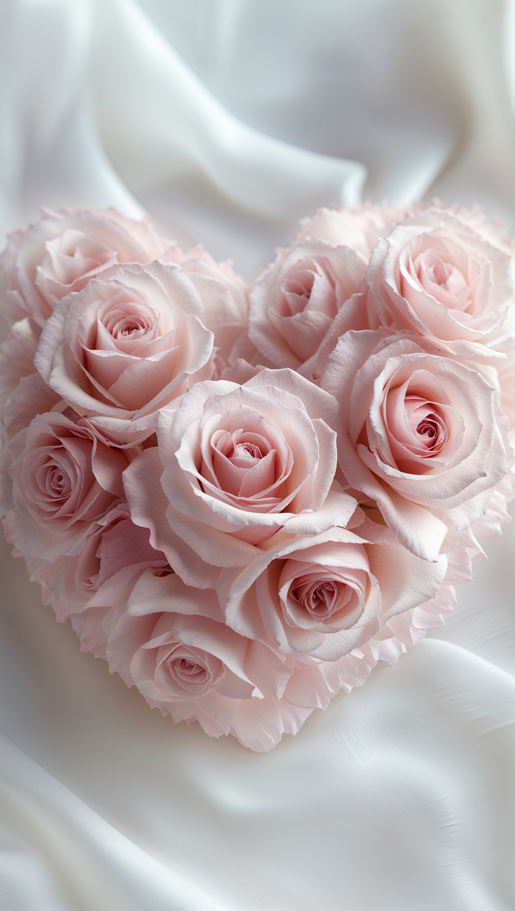 1664x2944 Delicate rose petals forming a heart shape, soft blur effect