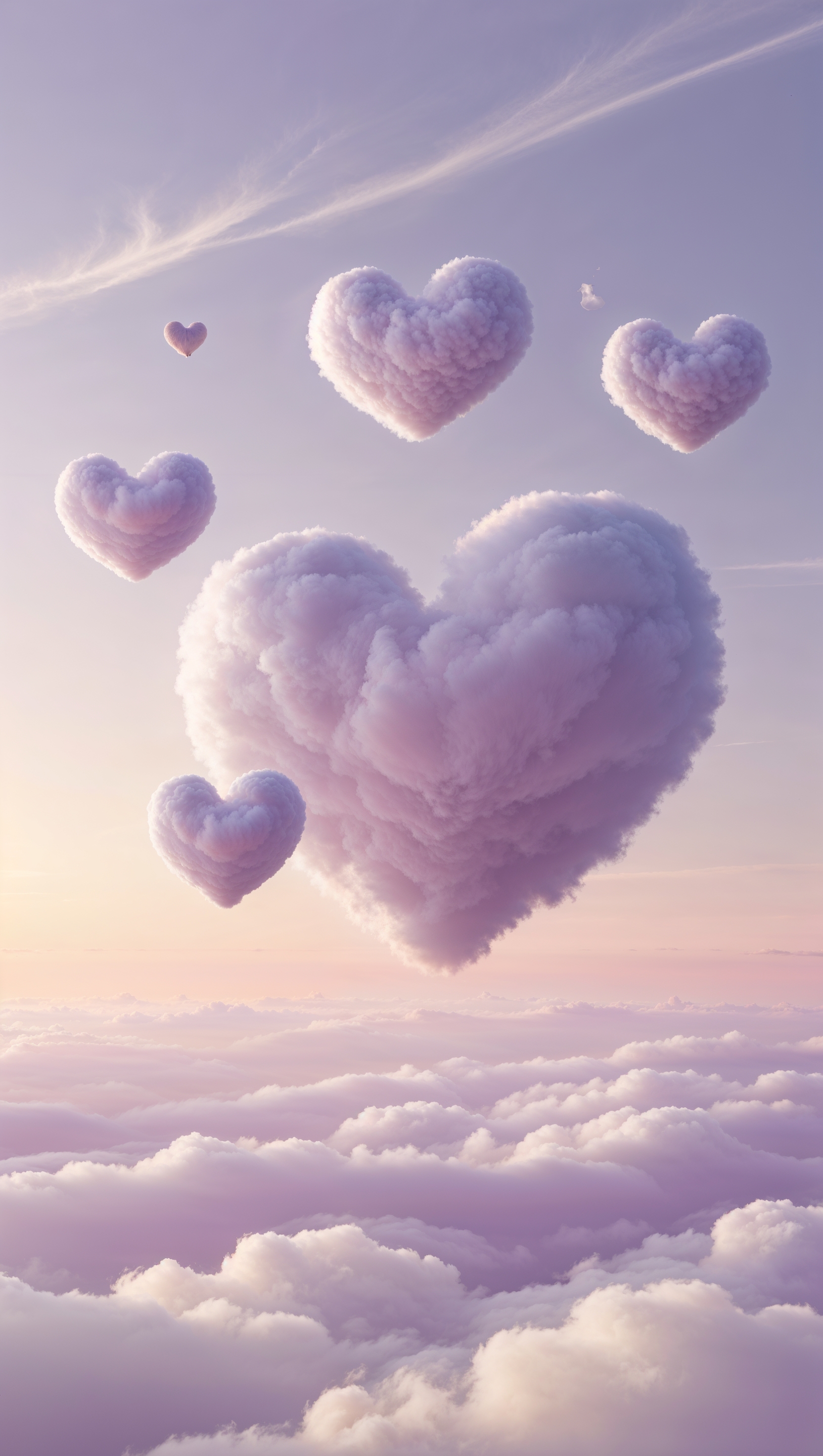 1664x2944 Cloud-shaped hearts floating in a dreamy pastel sky