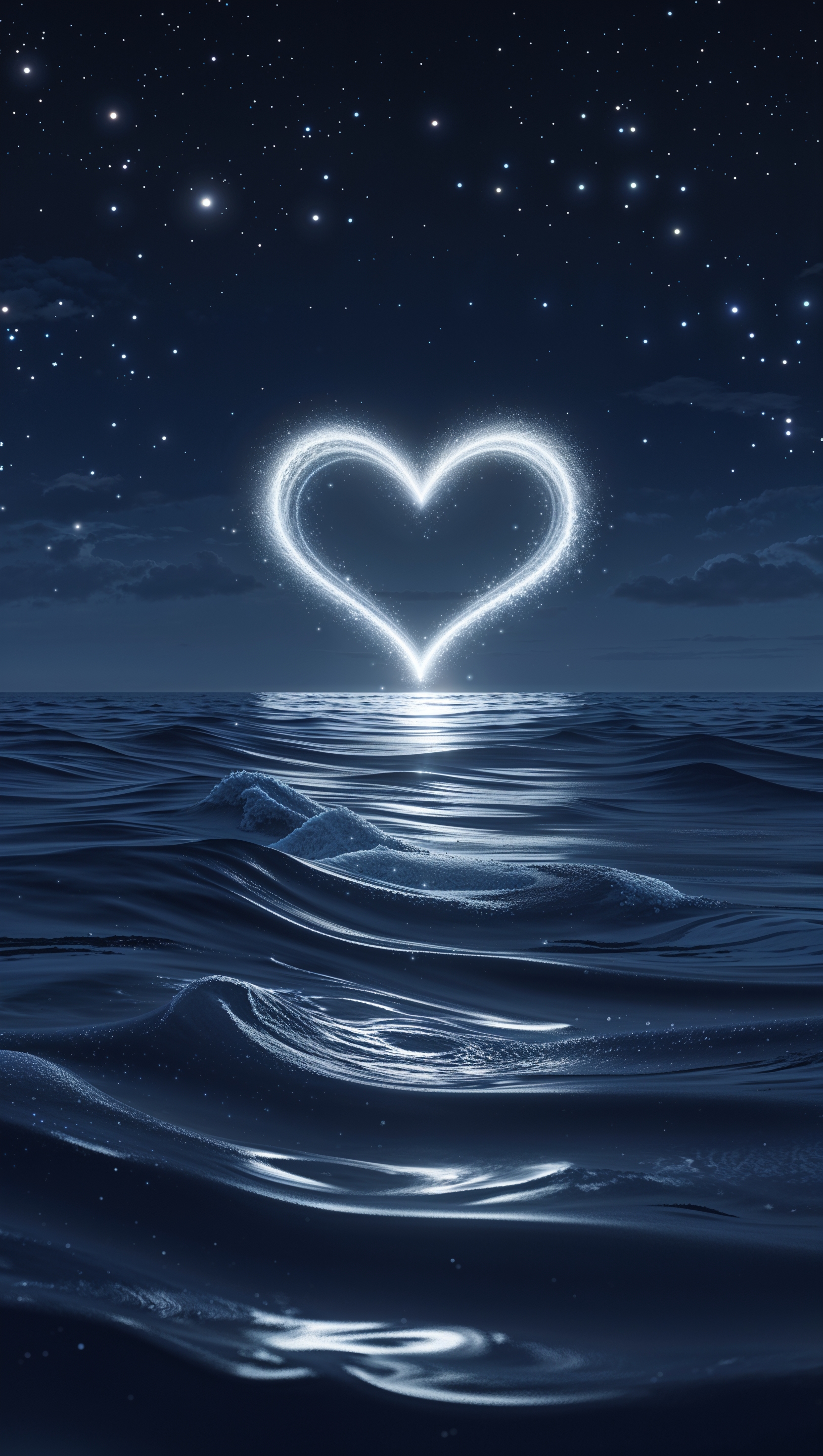 1664x2944 Moonlight forming a heart reflection over ocean waves