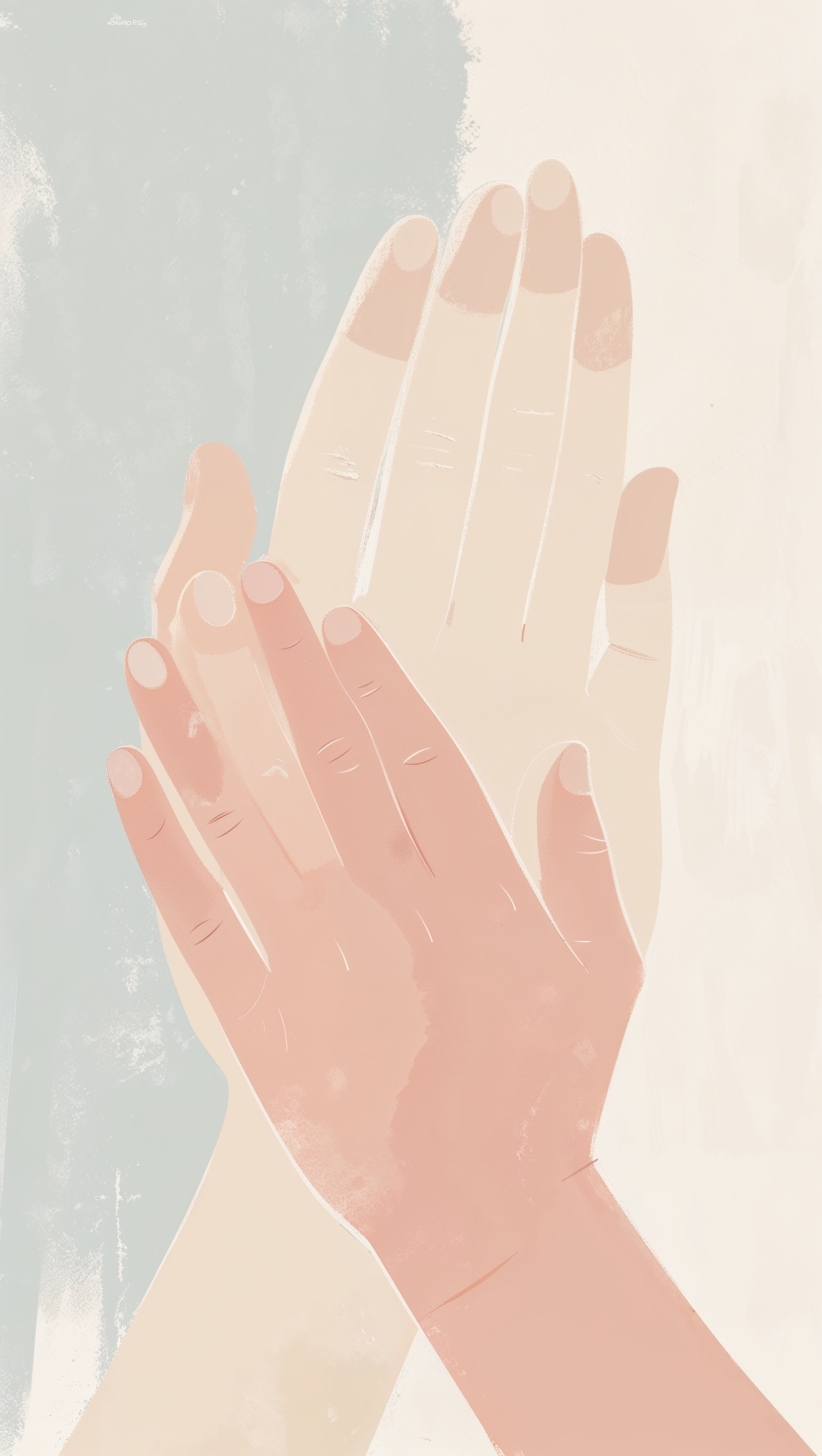 1664x2944 Hand holding another gently, illustrated in flat minimal color style