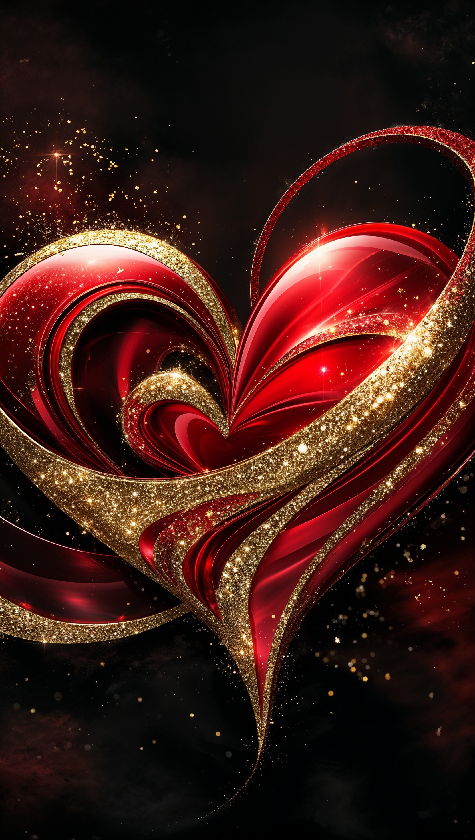 1664x2944 Red and gold abstract heart with glitter effect on dark background