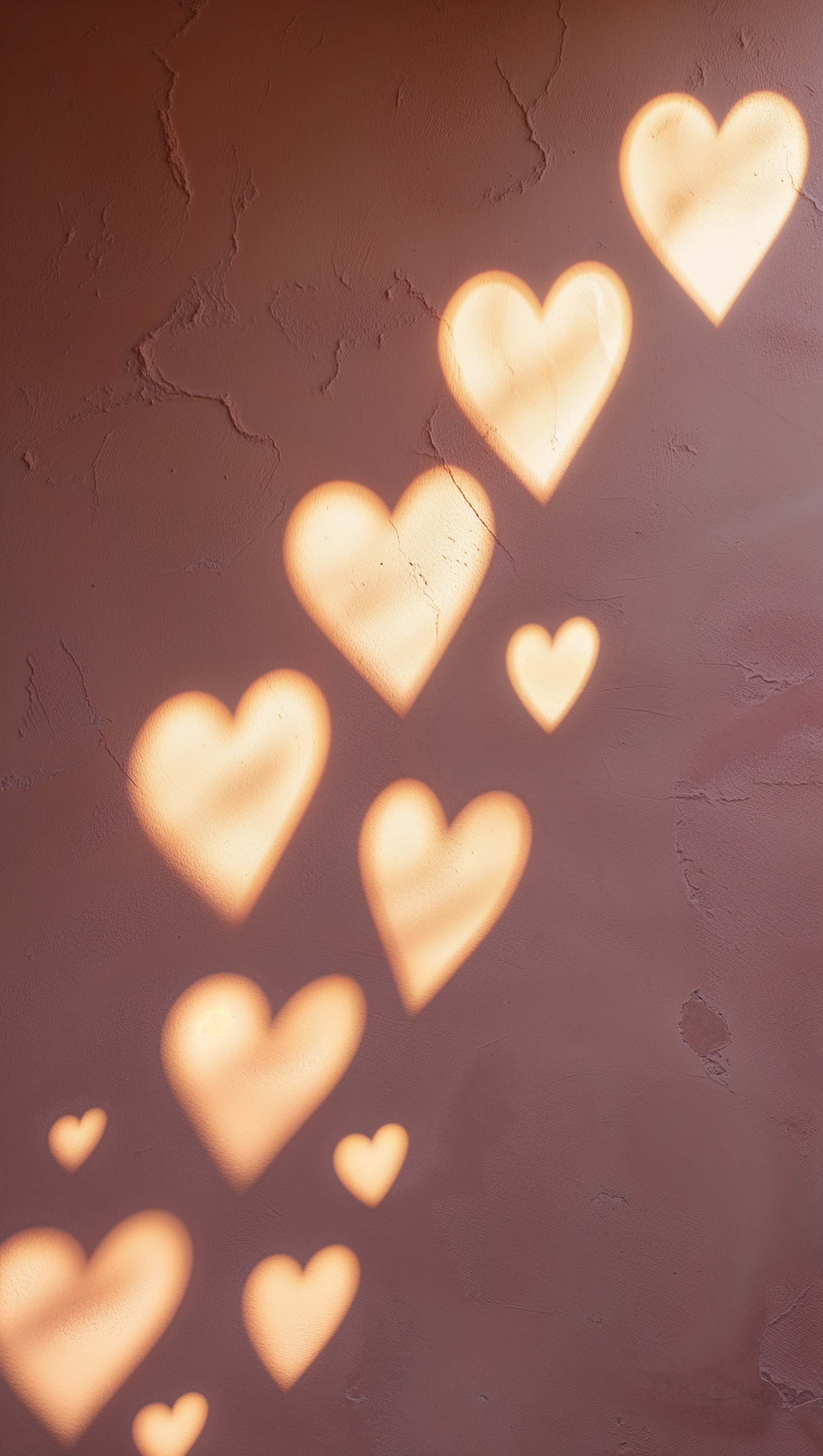 1664x2944 Candlelight forming heart shadows on a soft pink wall