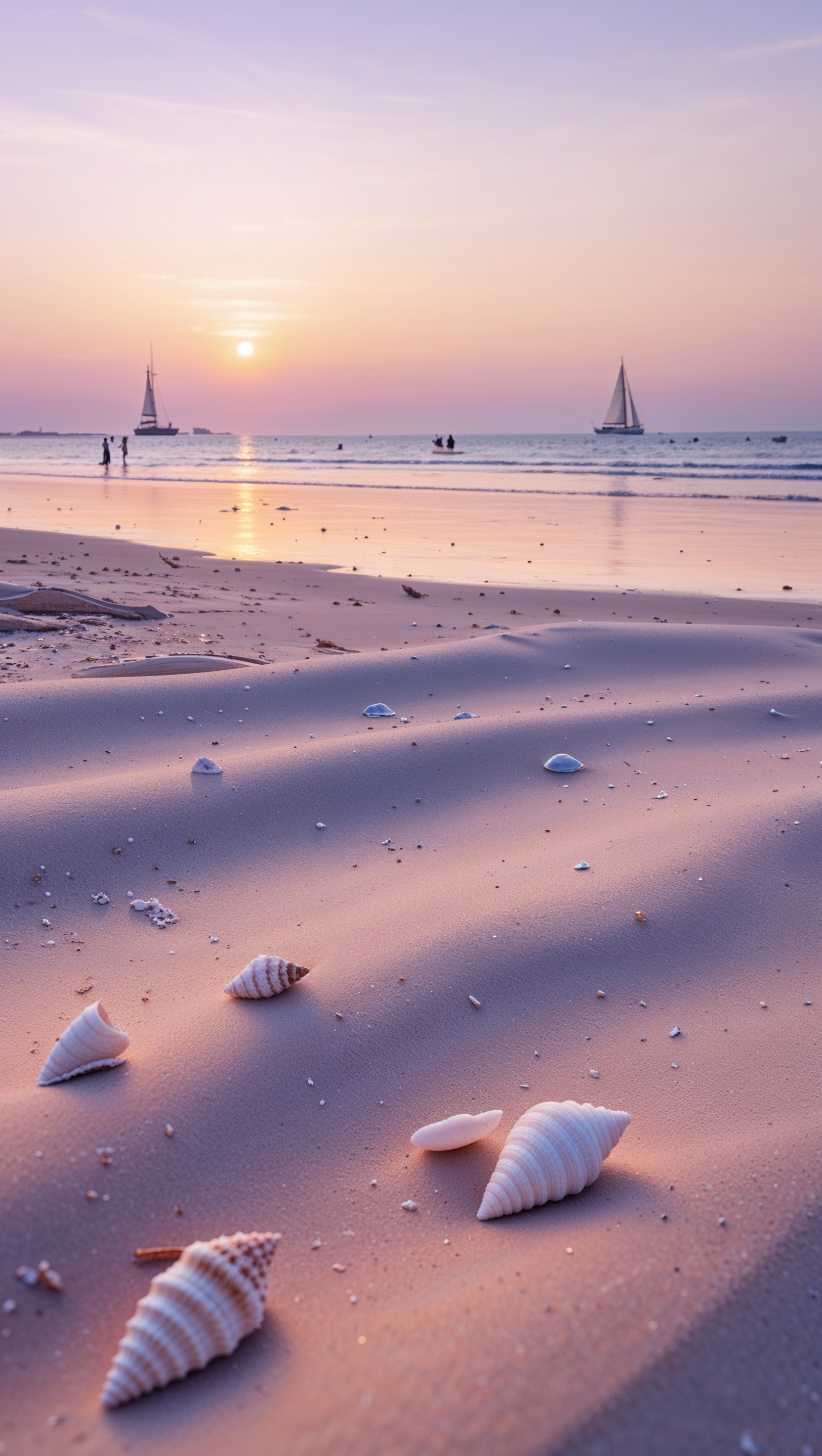 Calm beach with smooth sand and pastel sky at sunset 1664x2944 Calm beach with smooth sand and pastel sky at sunset
