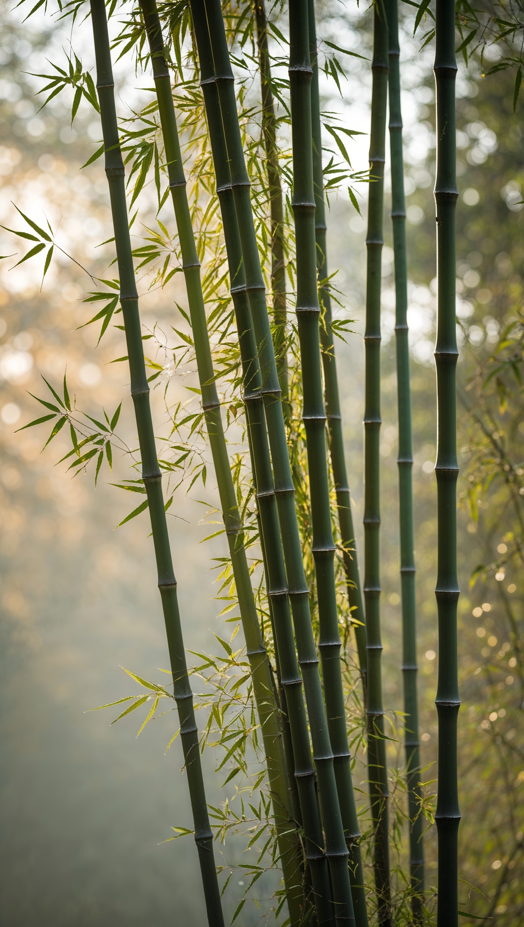 Vertical bamboo stalks with soft morning light and gentle shadows 1664x2944 Vertical bamboo stalks with soft morning light and gentle shadows