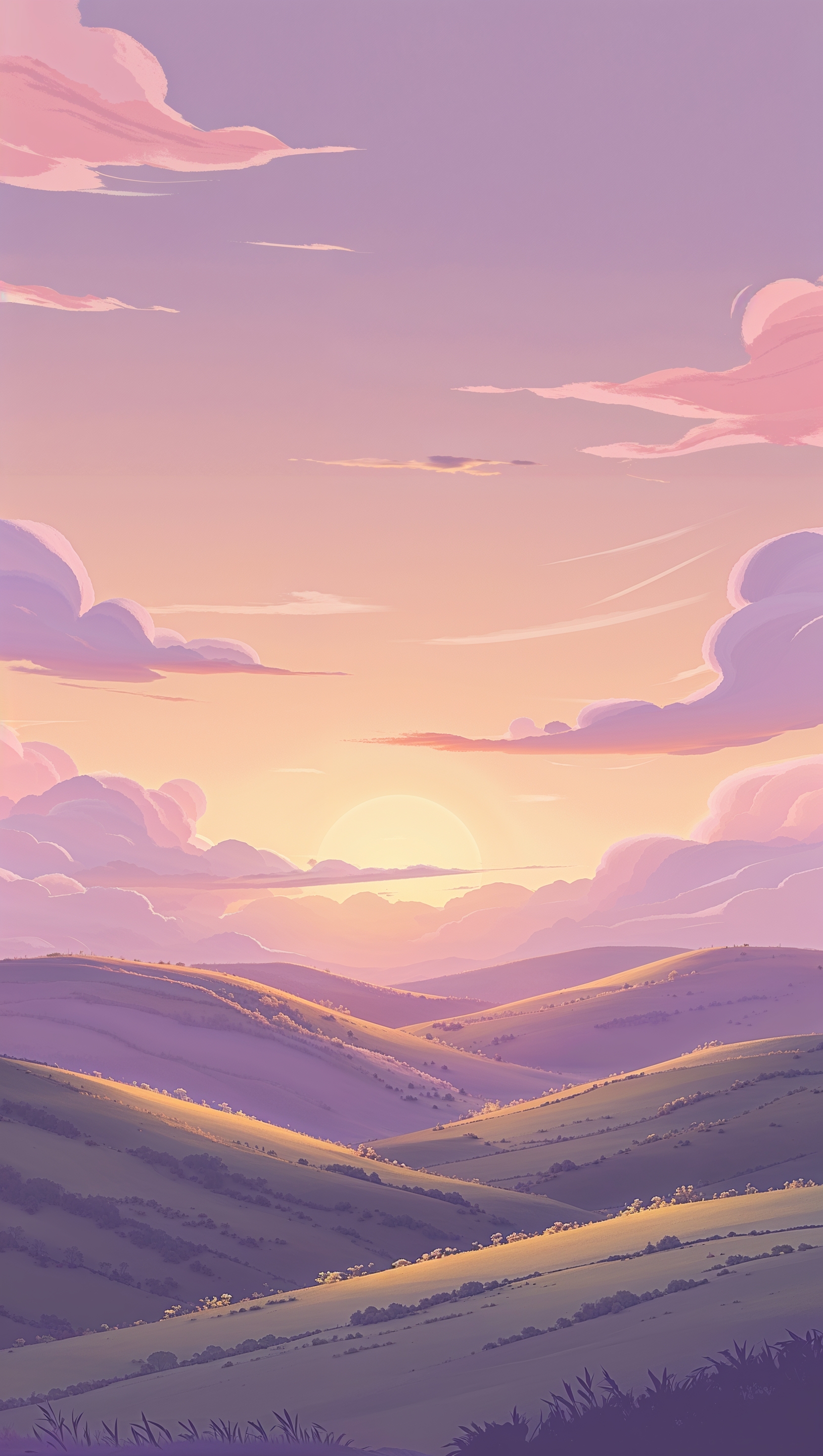 Sunset over quiet hills with warm pastel colors 1664x2944 Sunset over quiet hills with warm pastel colors