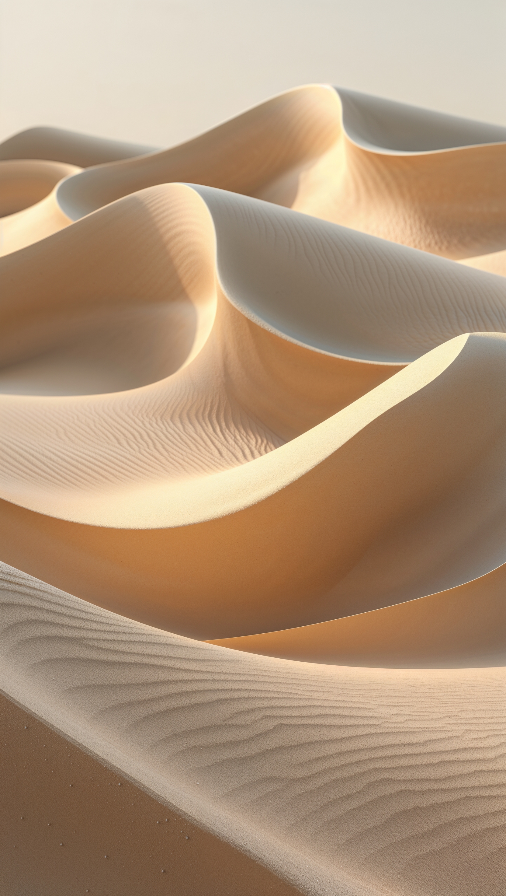 Smooth sandy desert with soft shadows under a pale blue sky 1664x2944 Smooth sandy desert with soft shadows under a pale blue sky