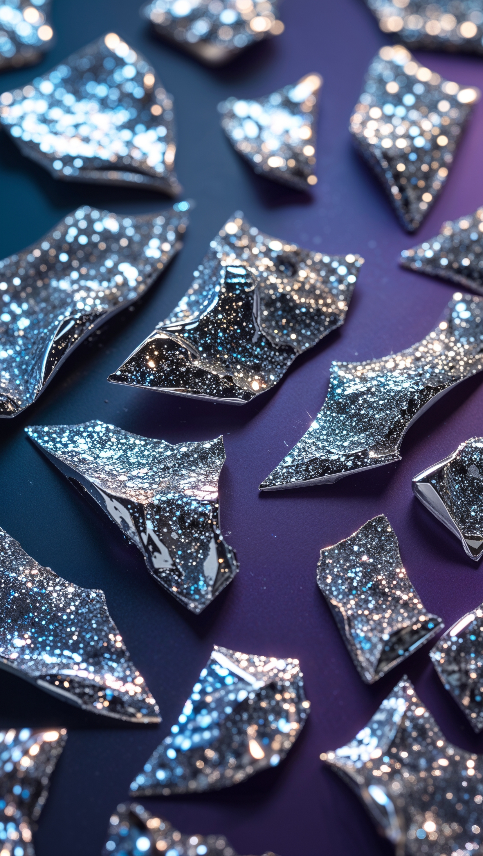 1664x2944 Bold silver glitter flakes with chrome shine and reflective textures