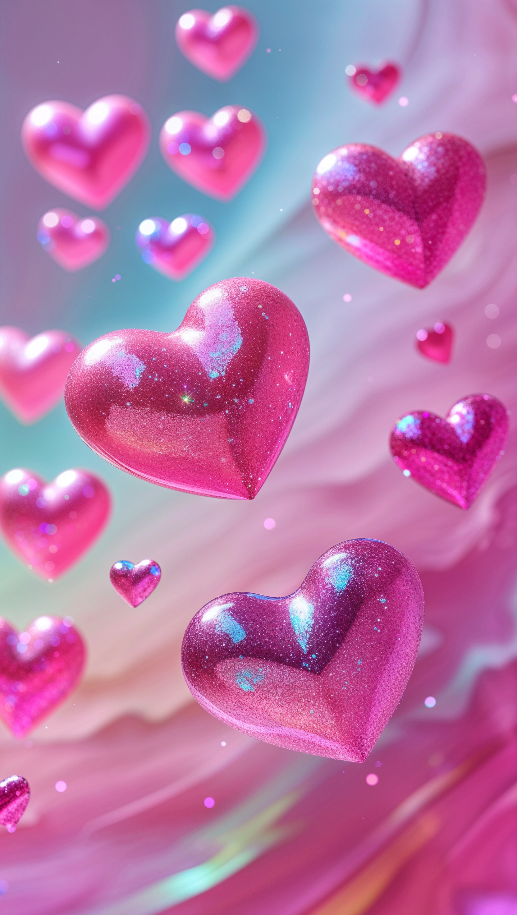 1664x2944 Shiny pink glitter heart shapes floating over gradient base