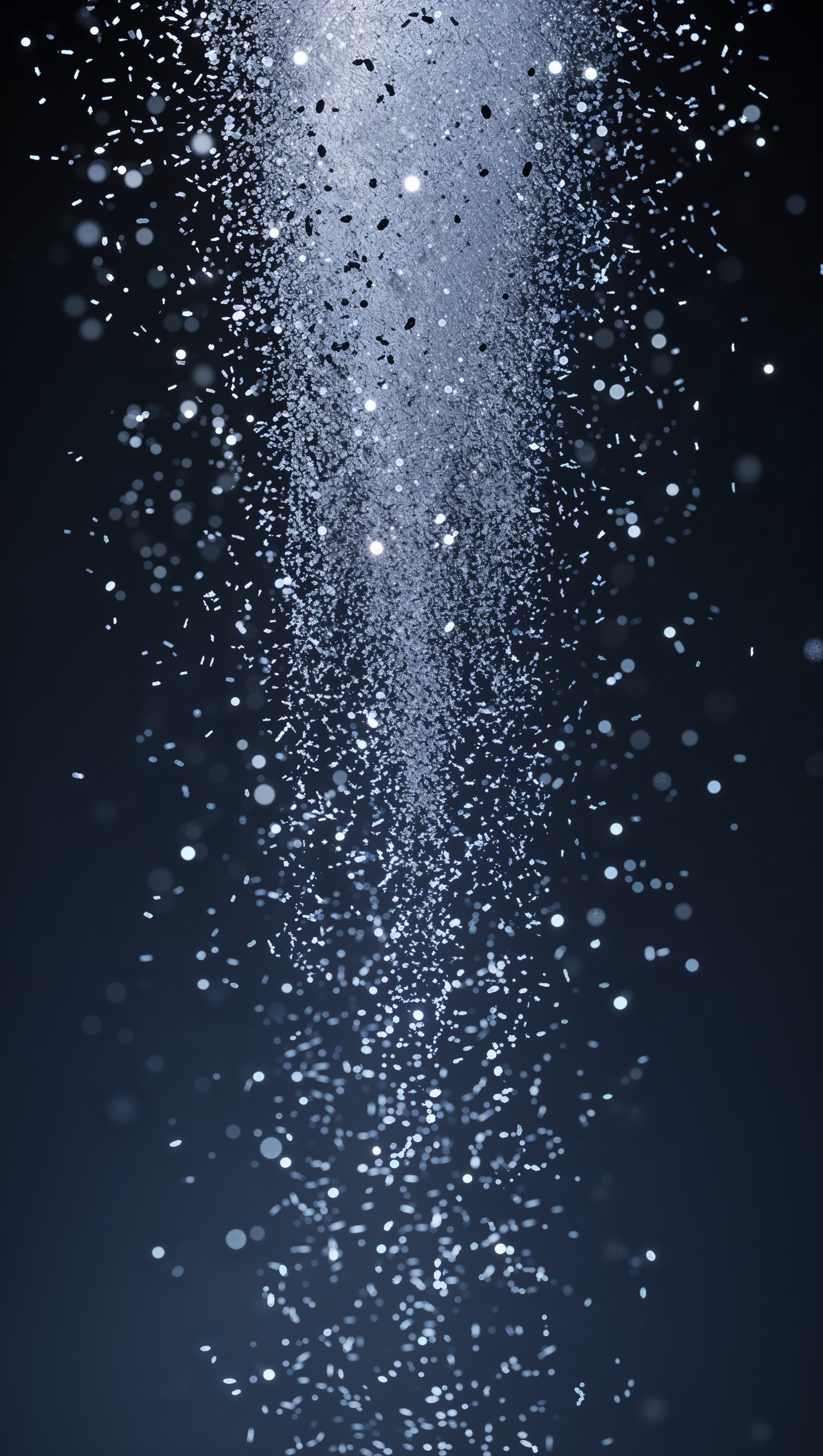 1664x2944 Vertical silver glitter rain effect with depth and glow