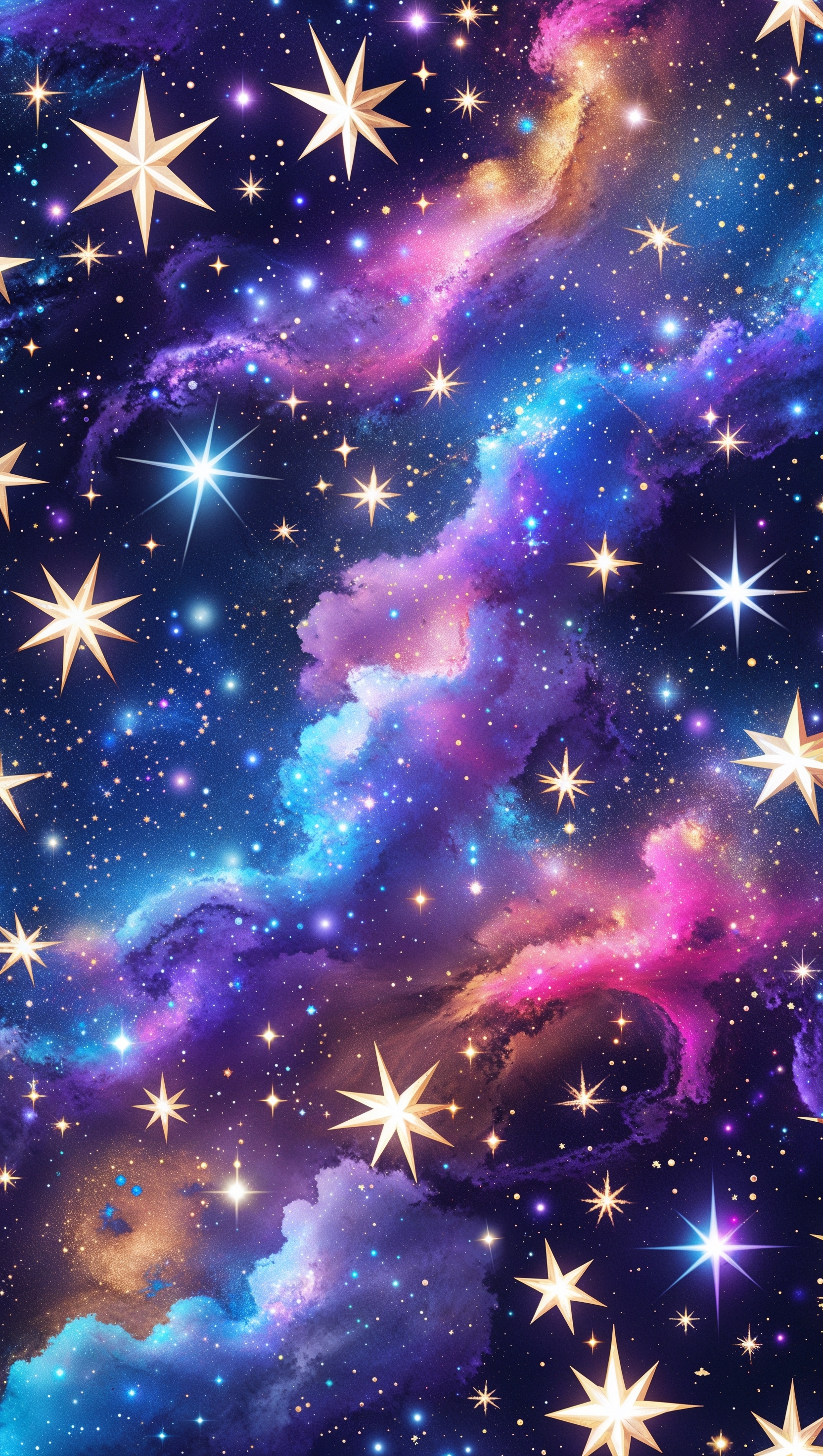 1664x2944 Galaxy-inspired glitter background with stars and sparkly nebula dust