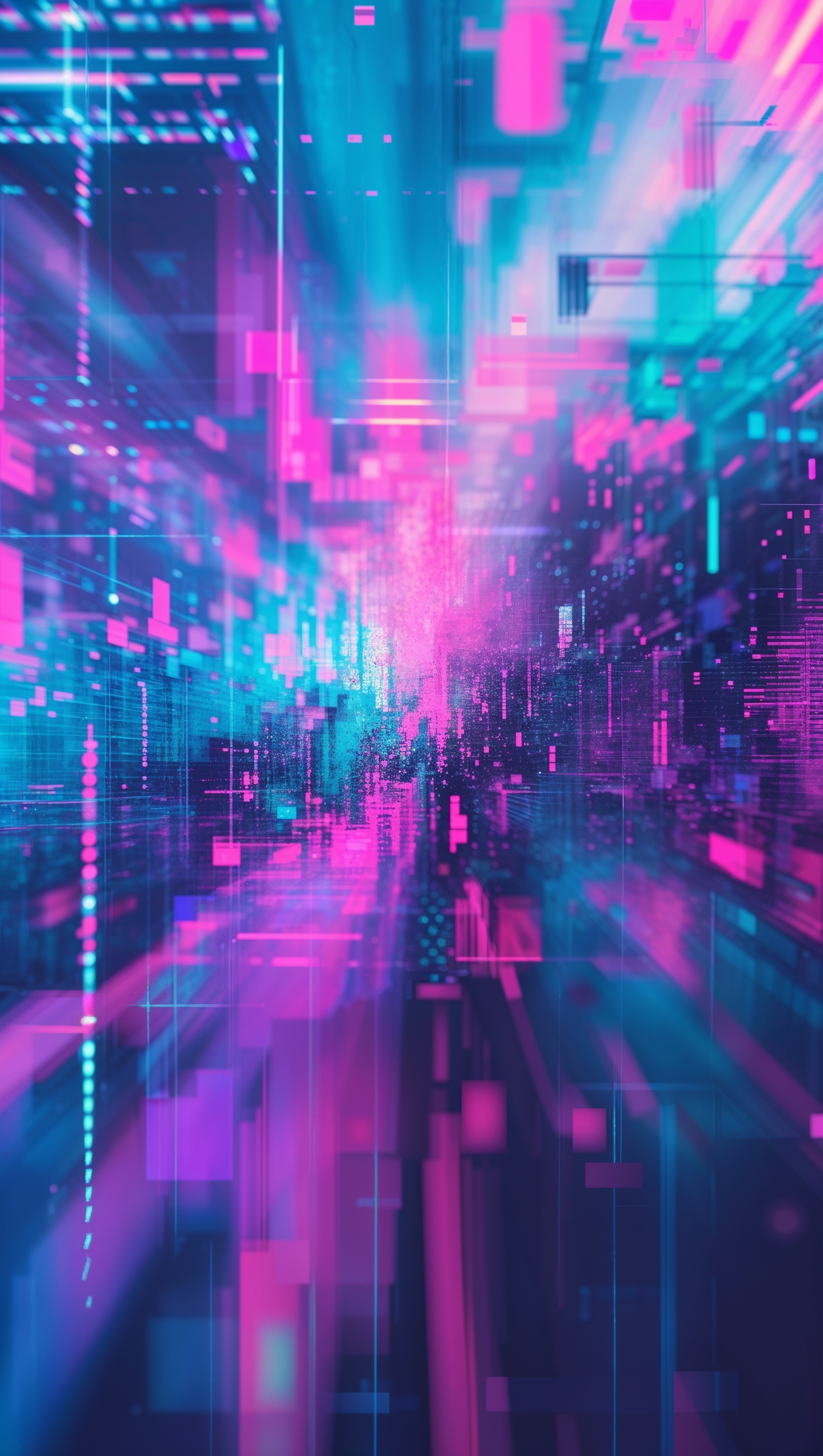 Glitch-style gradient with digital noise and color shift artifacts 1664x2944 Glitch-style gradient with digital noise and color shift artifacts
