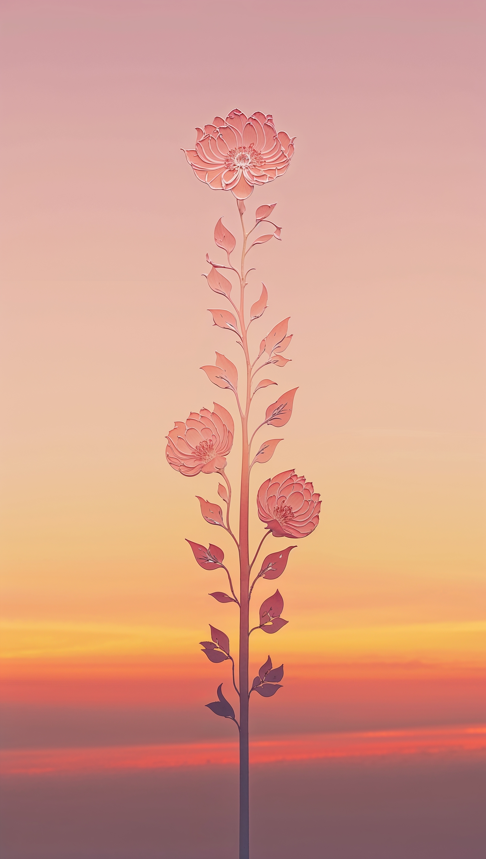 Vertical floral silhouette over a sunset gradient backdrop 1664x2944 Vertical floral silhouette over a sunset gradient backdrop