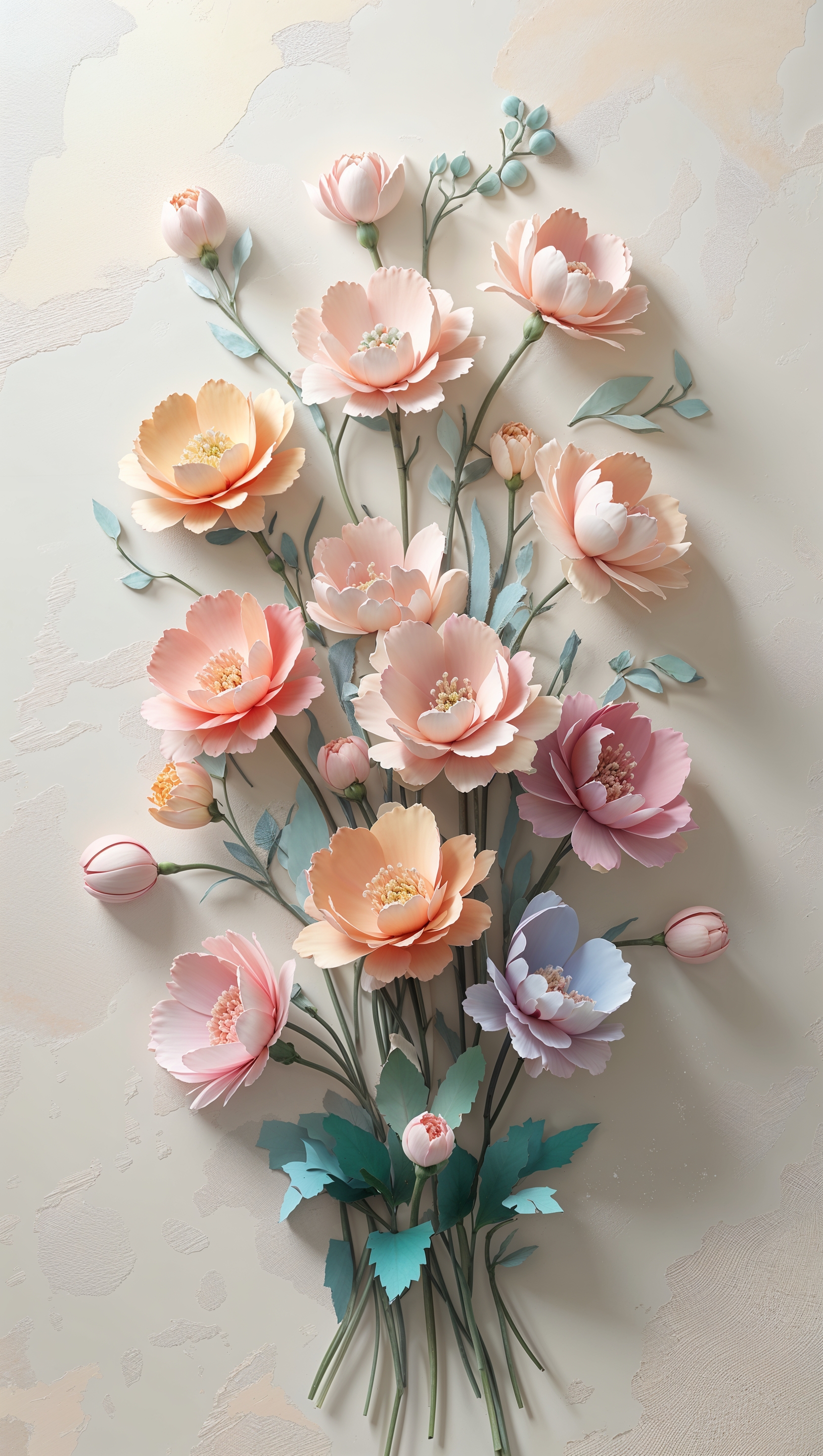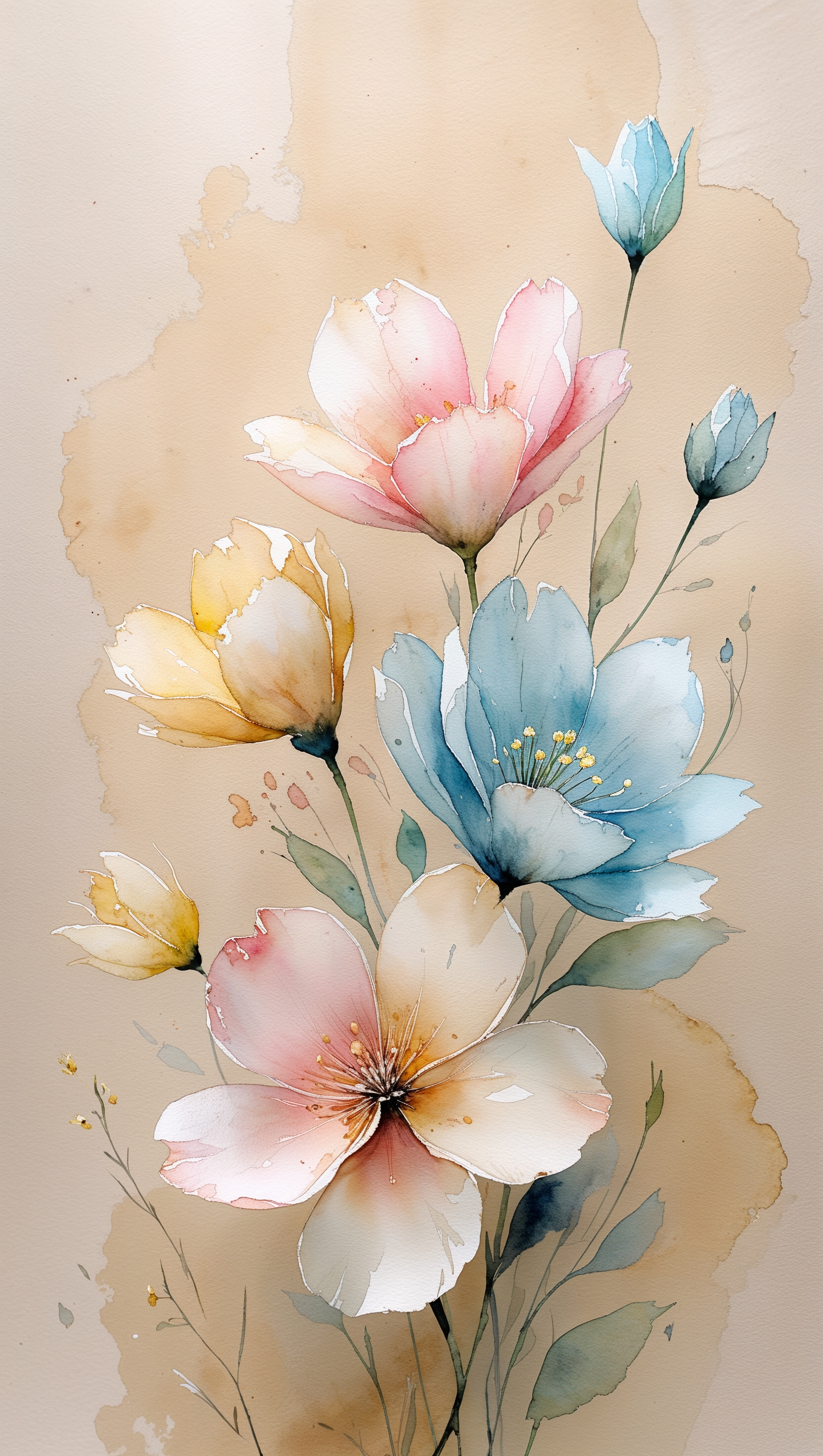 Aesthetic watercolor flowers in light tones, soft paper texture 1664x2944 Aesthetic watercolor flowers in light tones, soft paper texture