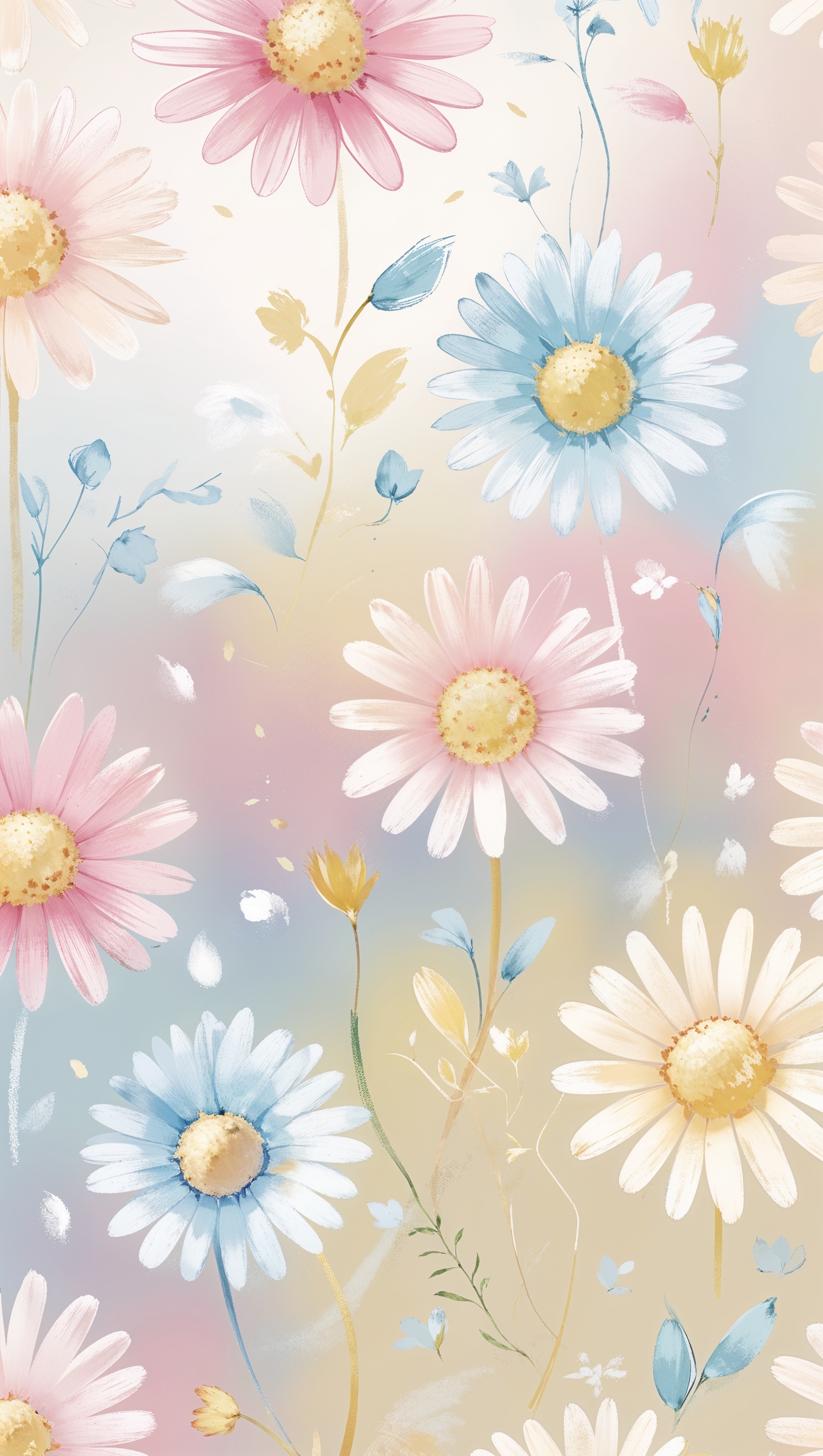 Pastel daisy pattern with subtle gradient, modern floral design 1664x2944 Pastel daisy pattern with subtle gradient, modern floral design