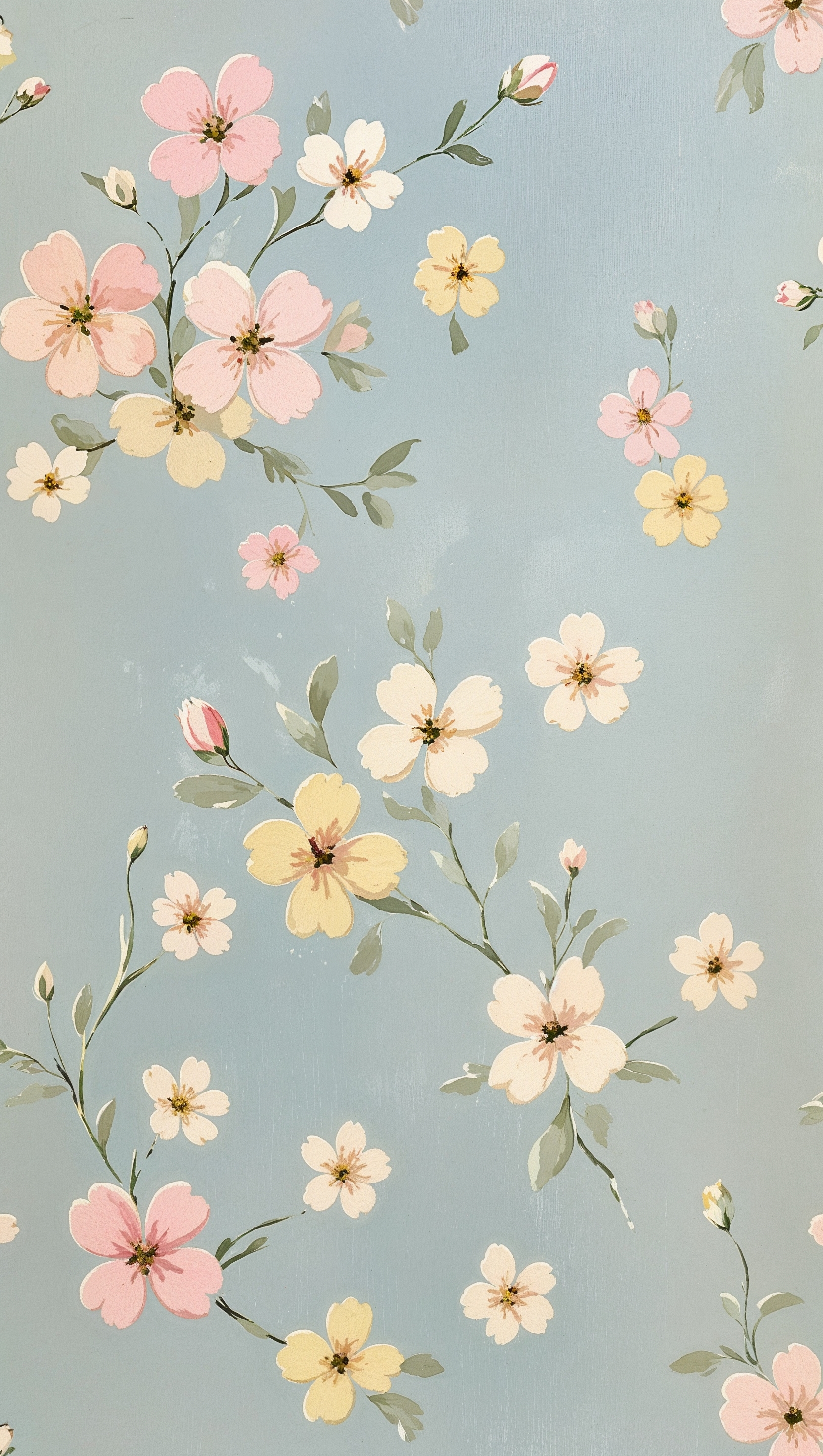 Floral wallpaper with light blue background and scattered tiny blossoms 1664x2944 Floral wallpaper with light blue background and scattered tiny blossoms