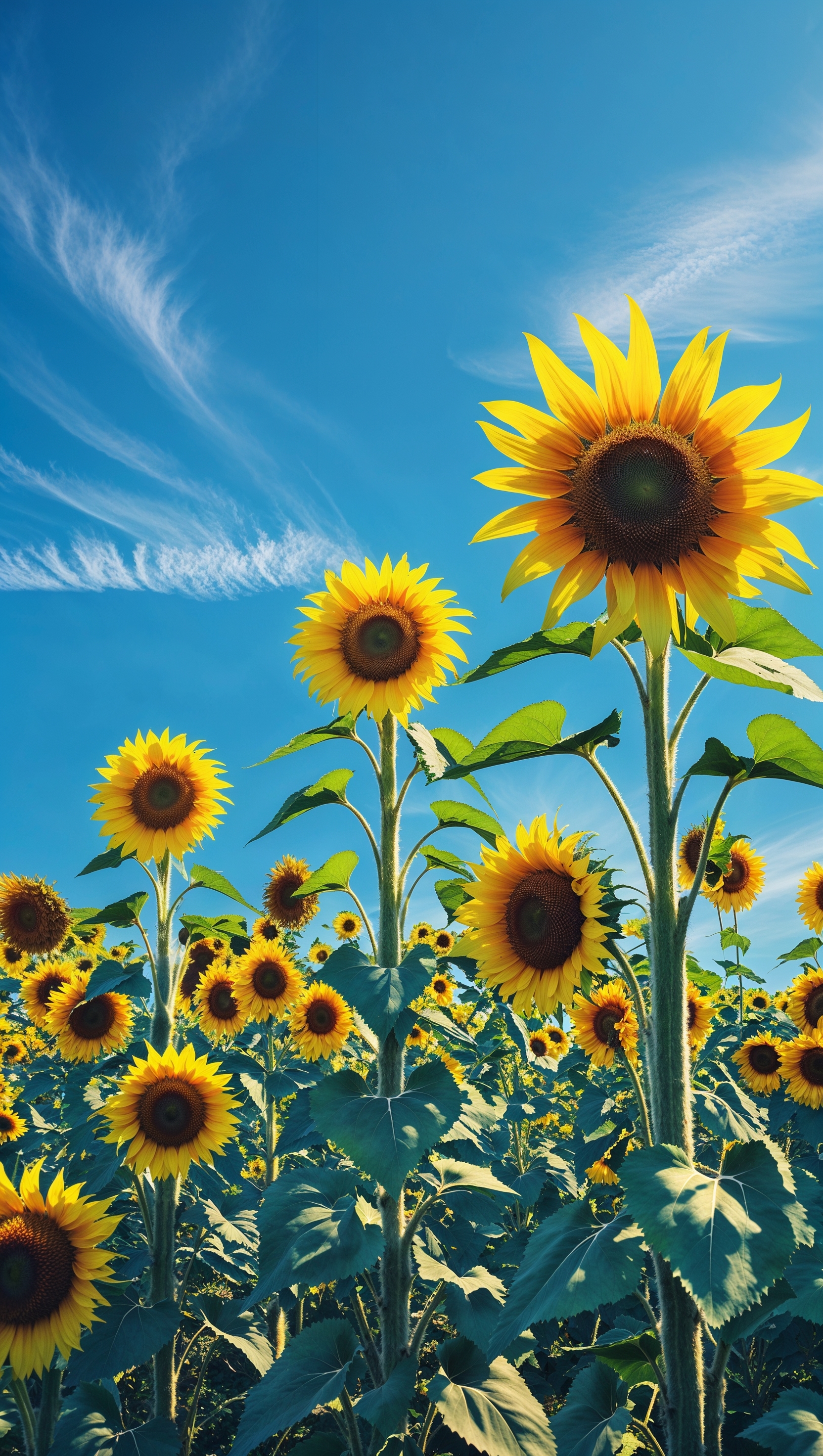 Vibrant sunflowers with bright blue sky background, joyful and energetic 1664x2944 Vibrant sunflowers with bright blue sky background, joyful and energetic