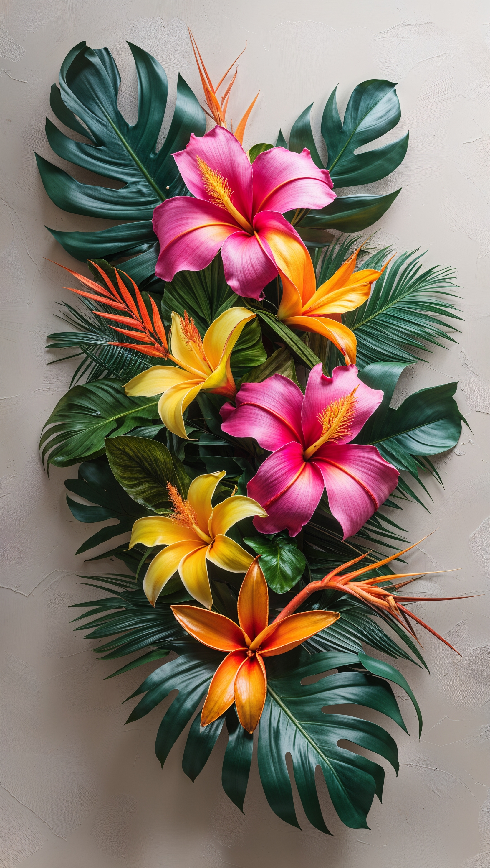 Tropical flower arrangement with bold colors and leafy accents 1664x2944 Tropical flower arrangement with bold colors and leafy accents