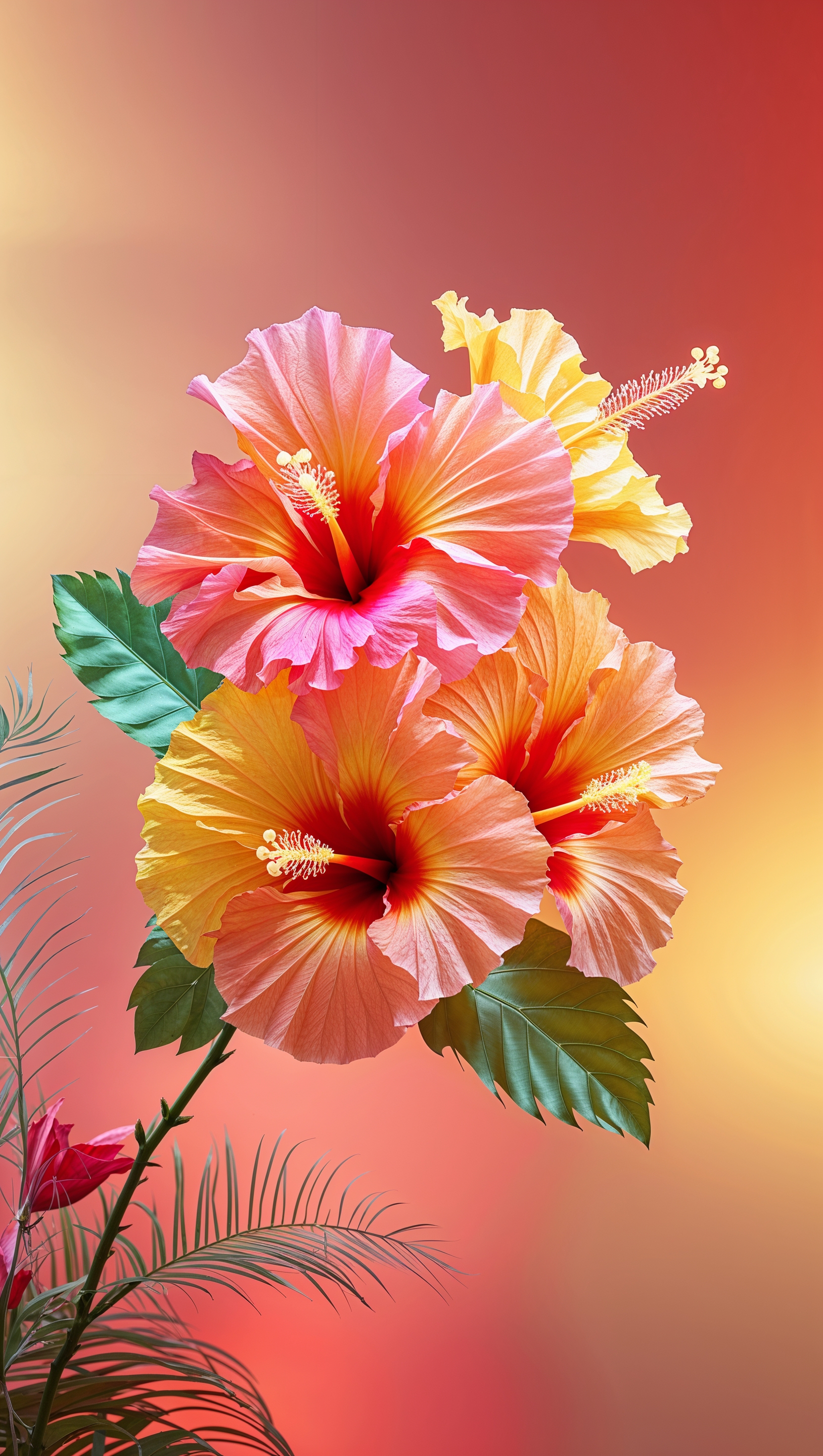 Tropical hibiscus flowers with glowing sunset tones 1664x2944 Tropical hibiscus flowers with glowing sunset tones