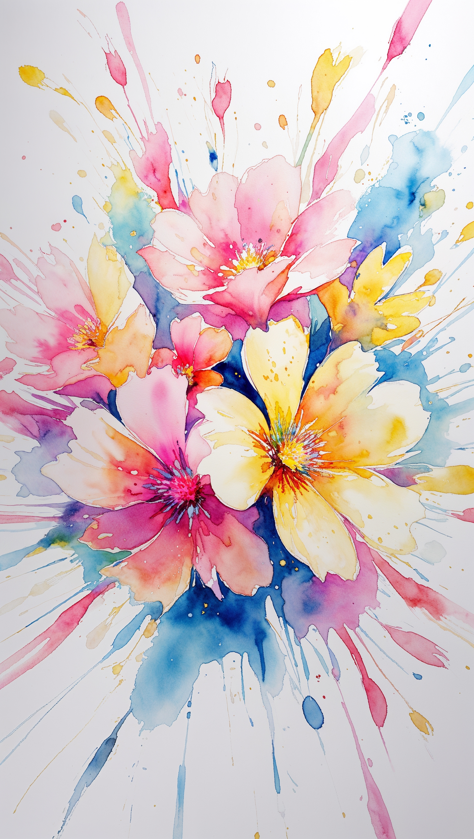 Bright watercolor flower splash in center with clean white edge 1664x2944 Bright watercolor flower splash in center with clean white edge