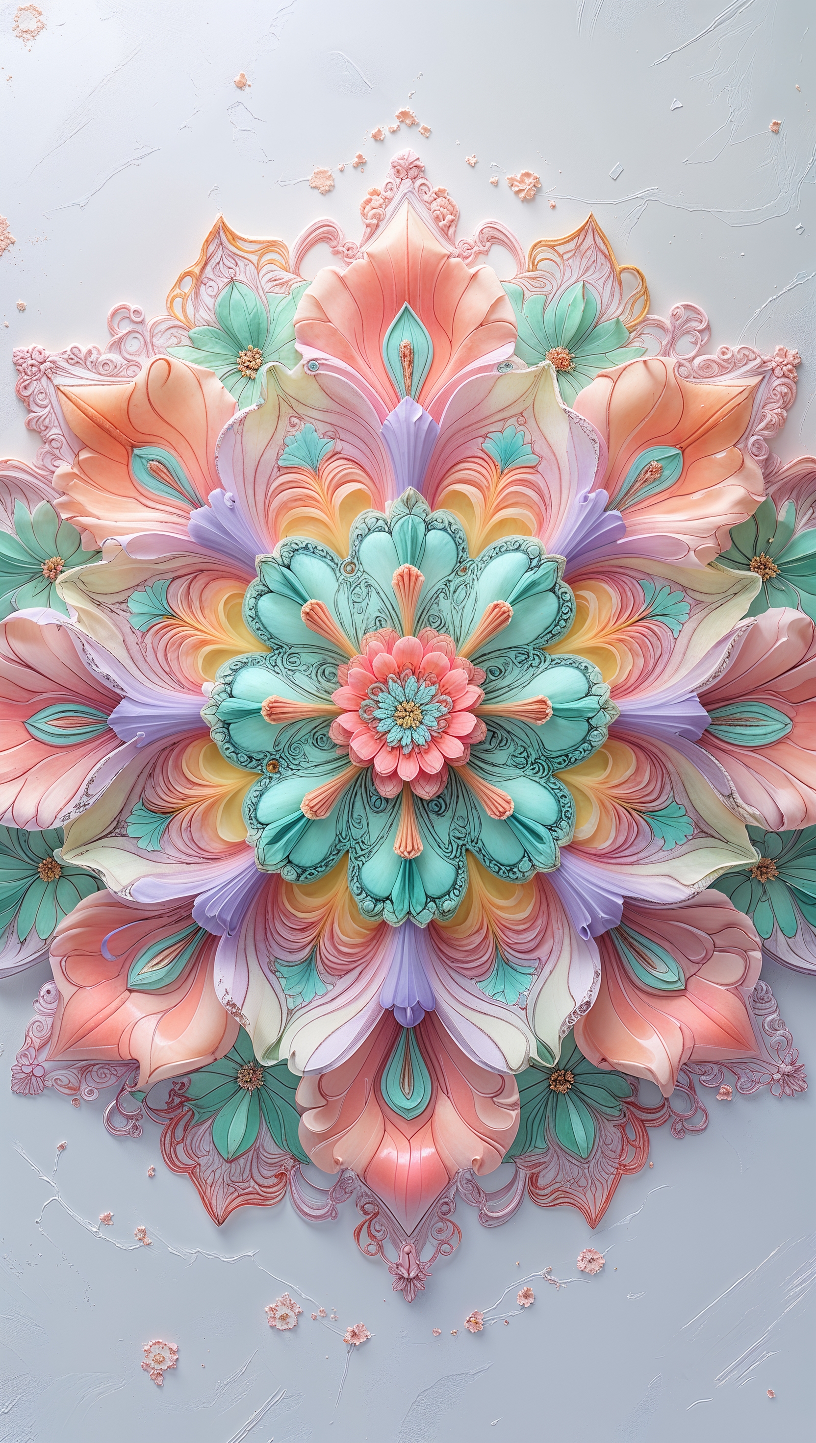 Colorful floral mandala with soft symmetry and vibrant tones 1664x2944 Colorful floral mandala with soft symmetry and vibrant tones