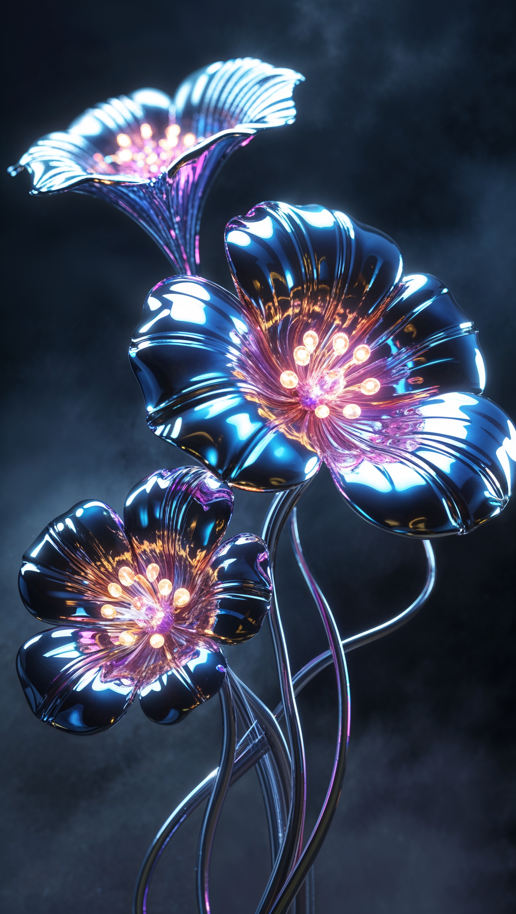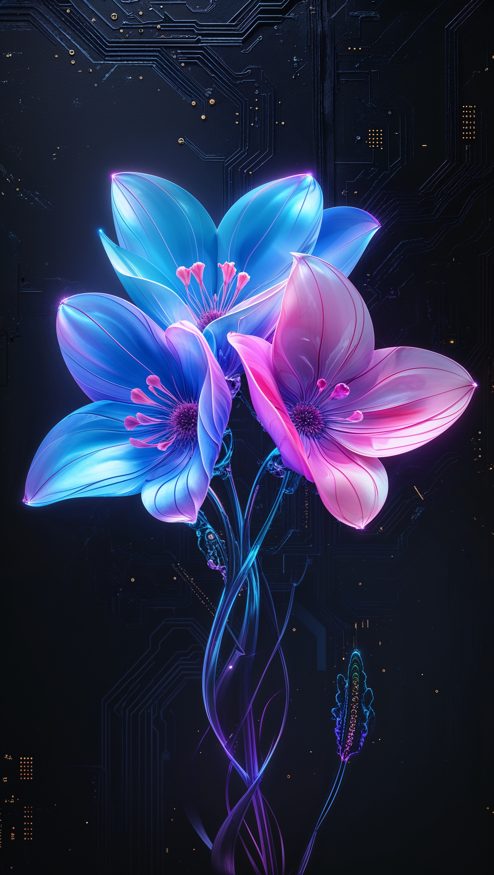 Neon-style glowing flowers on black background, cyber aesthetic 1664x2944 Neon-style glowing flowers on black background, cyber aesthetic