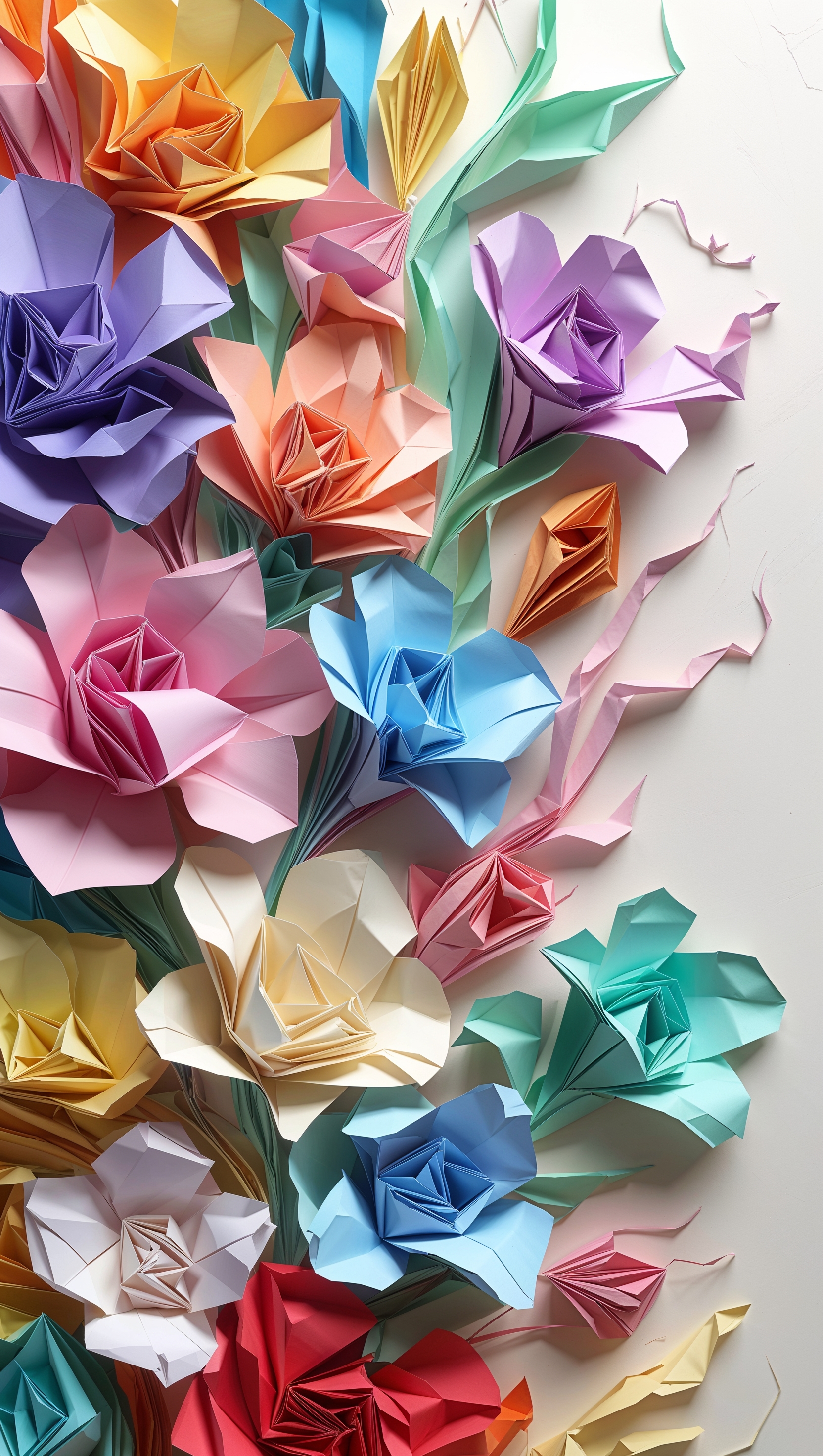 Origami-style folded paper flowers in colorful tones, abstract concept 1664x2944 Origami-style folded paper flowers in colorful tones, abstract concept