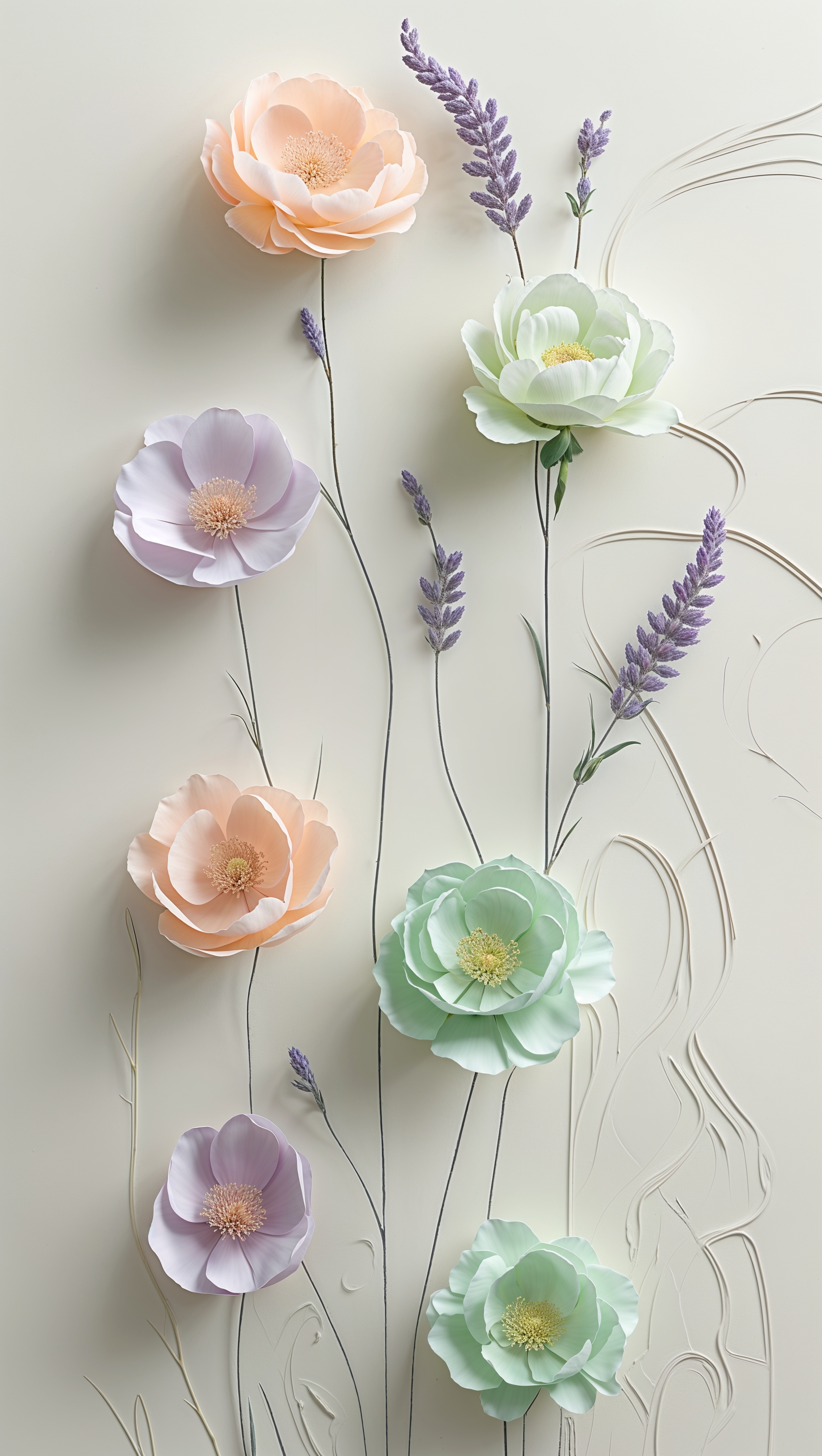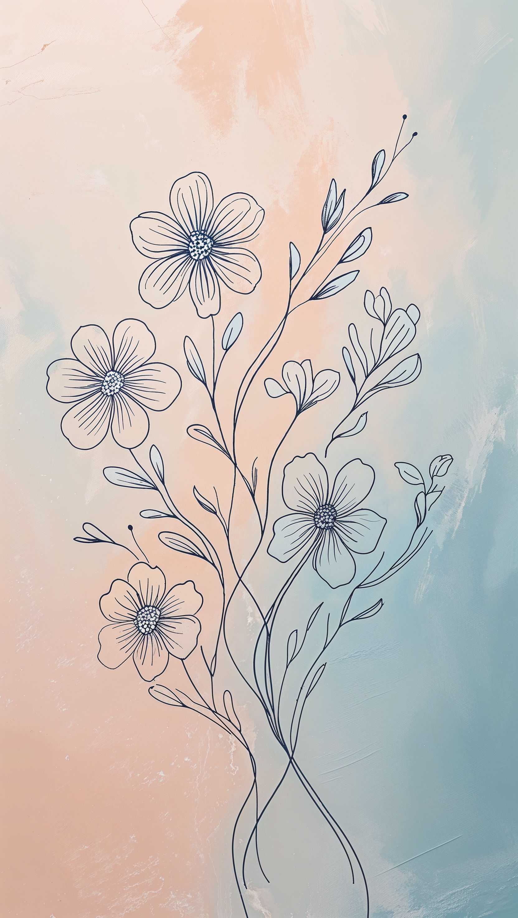 Line-art floral sketch on soft pastel background, modern aesthetic 1664x2944 Line-art floral sketch on soft pastel background, modern aesthetic