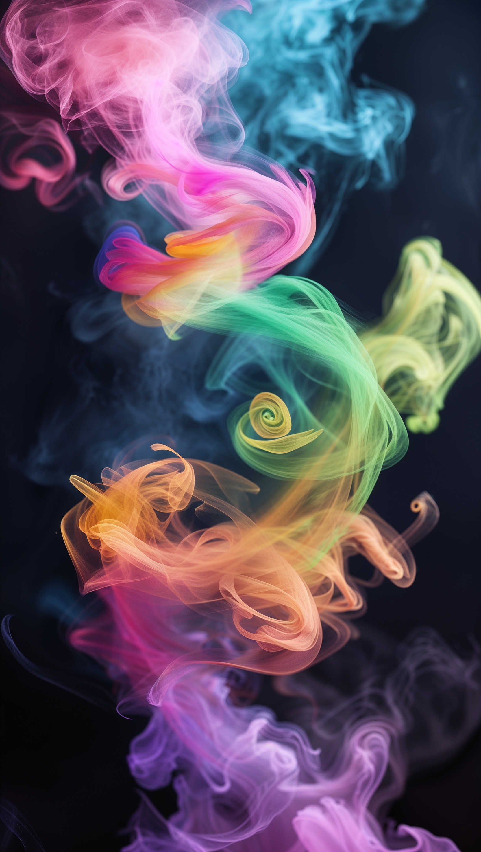 1664x2944 Rainbow smoke wisps with dark backdrop, glowing and vivid contrast