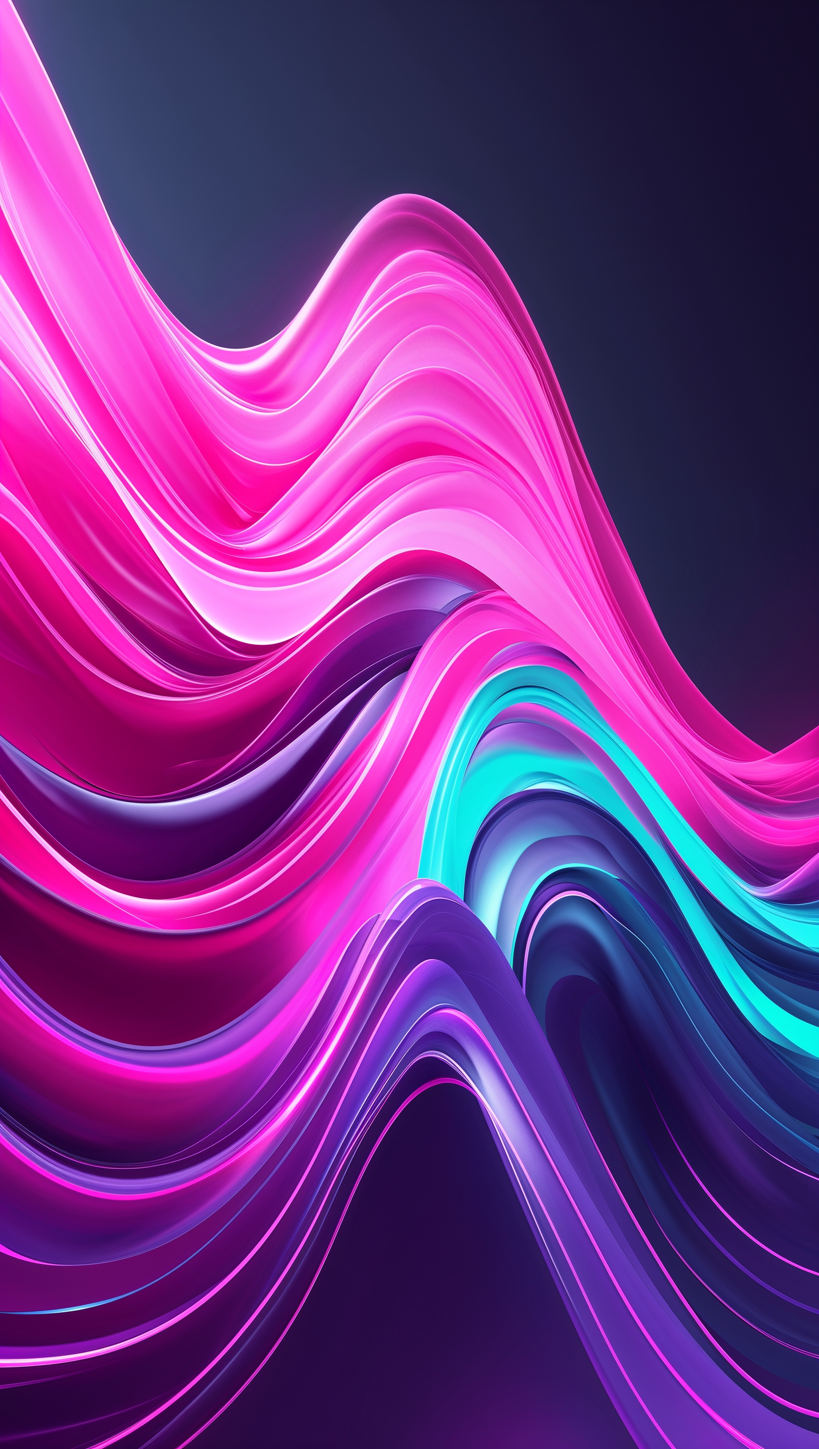 1664x2944 Bright neon abstract waves in pink, cyan, and purple tones, vertical format