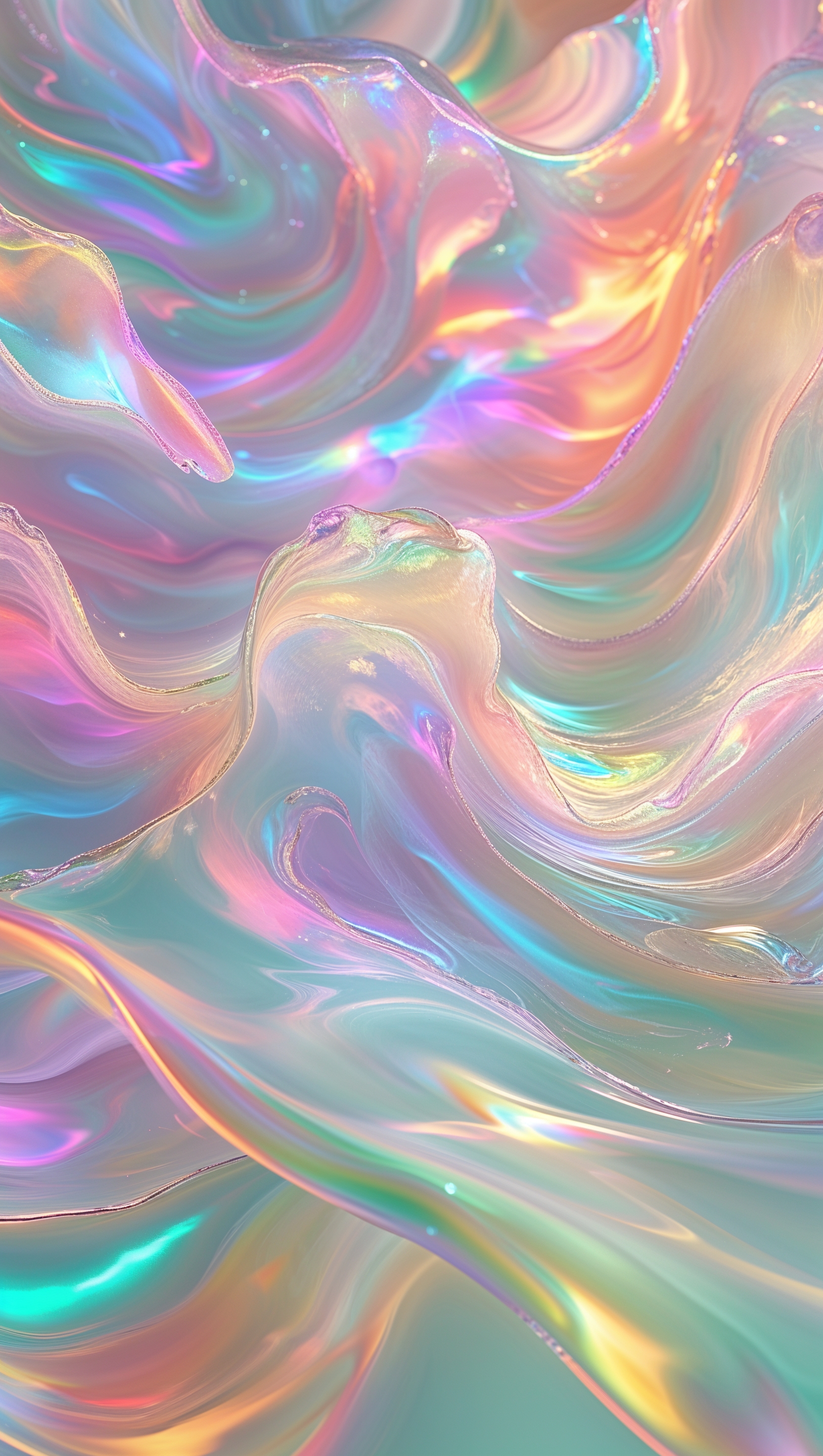 1664x2944 Modern liquid holographic texture in soft rainbow sheen