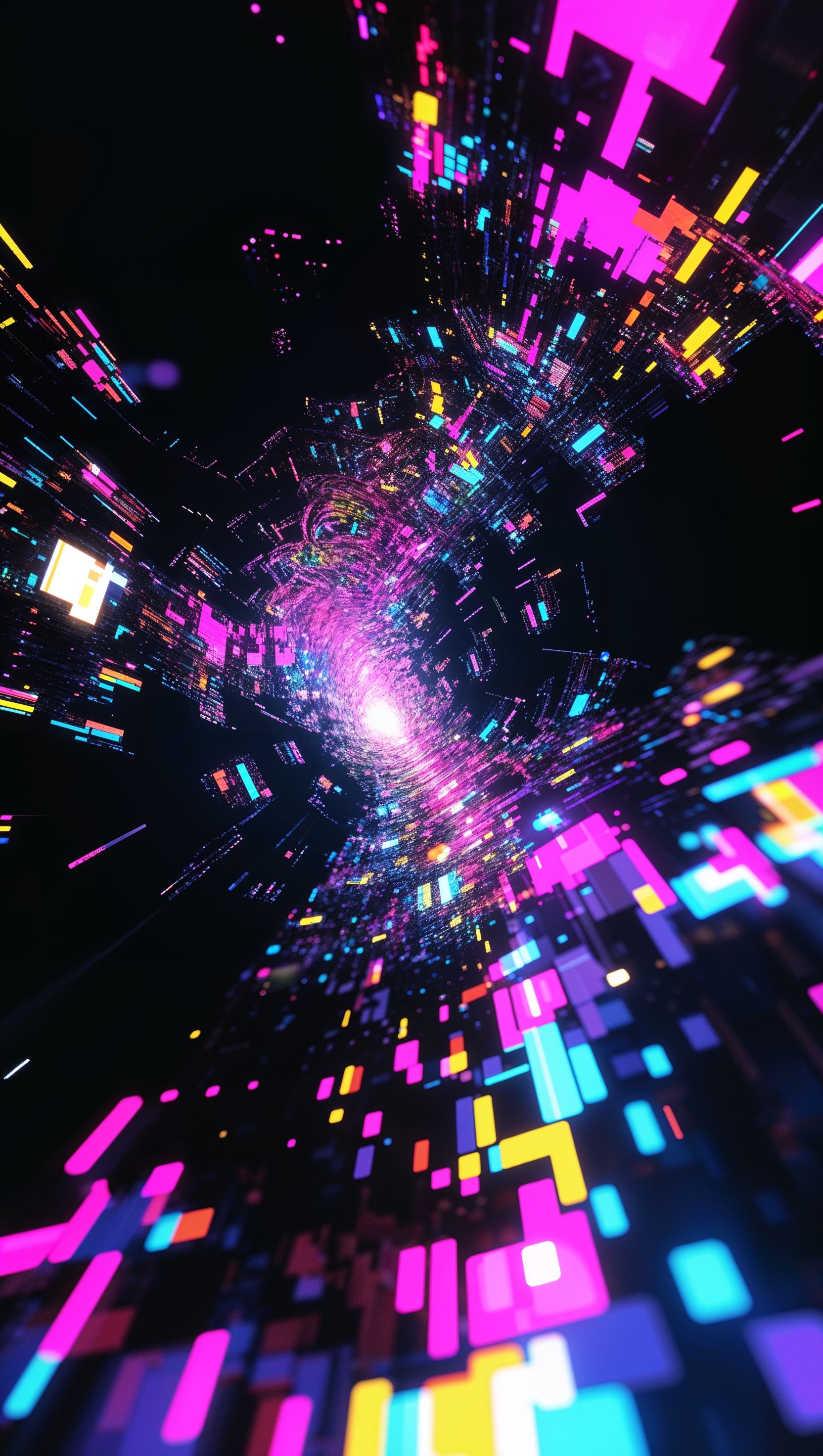 1664x2944 Colorful digital glitch effect in rainbow tones on black backdrop