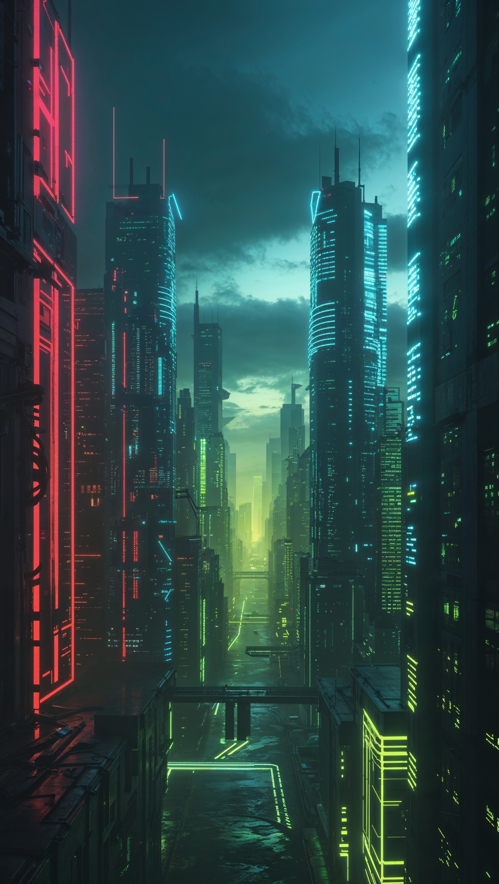 1664x2944 Cyberpunk color palette blend with glowing accents and dark contrast