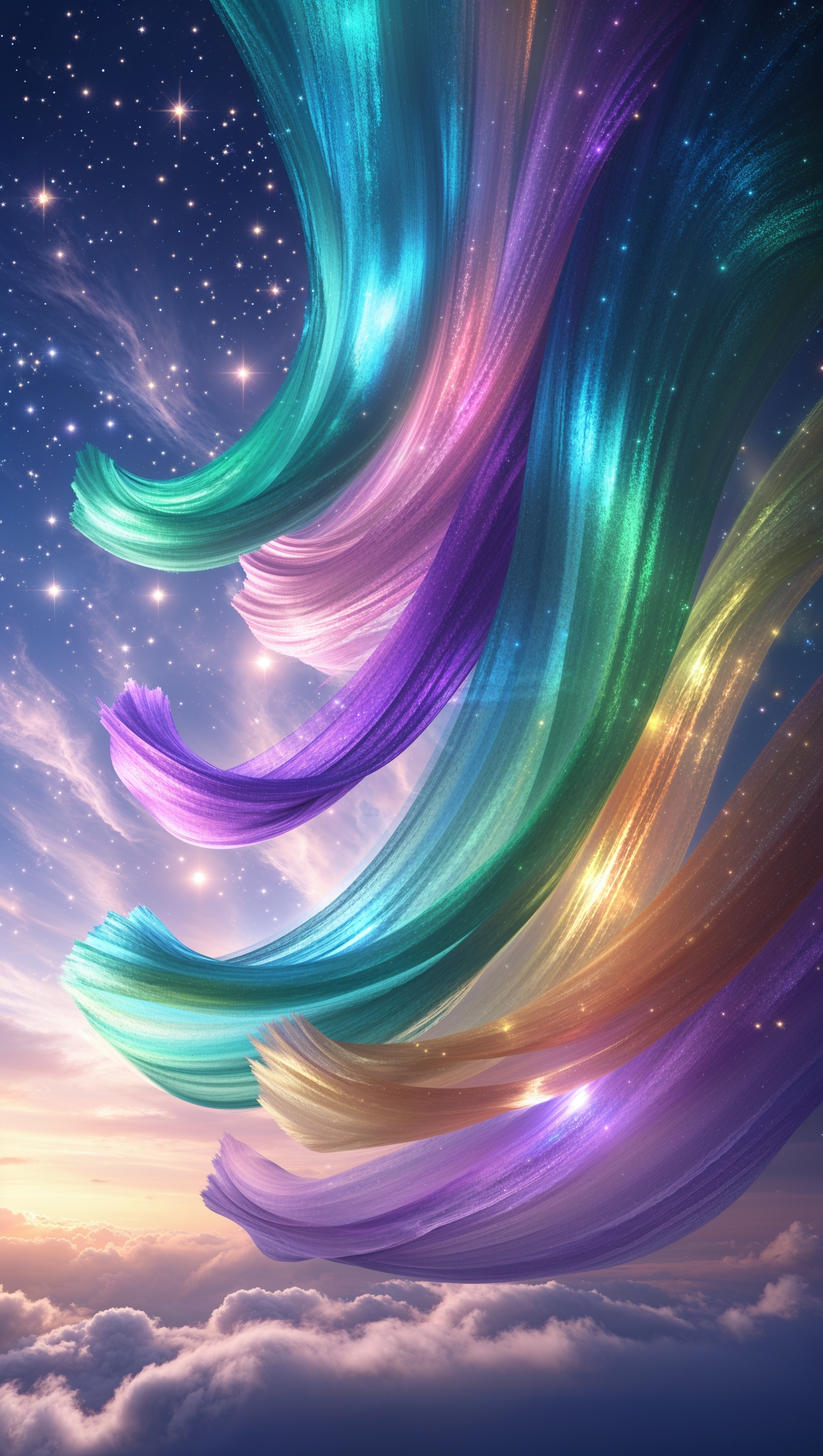 1664x2944 Flowing silk texture in shifting rainbow hues, elegant and smooth