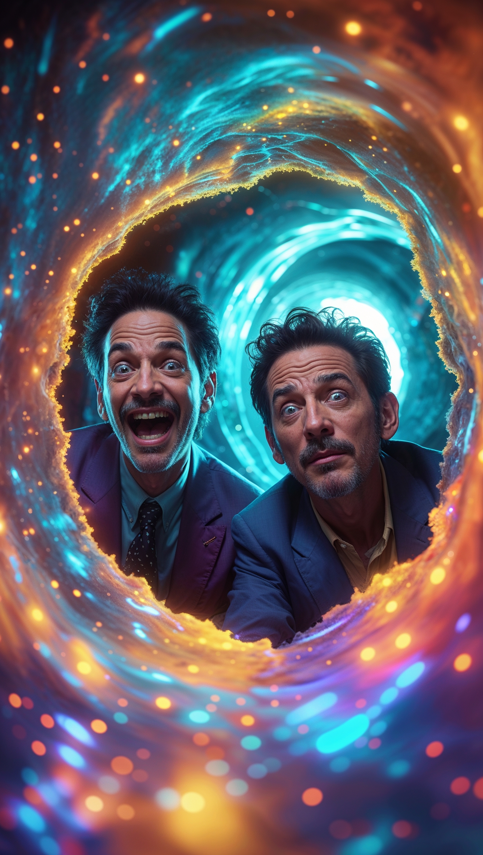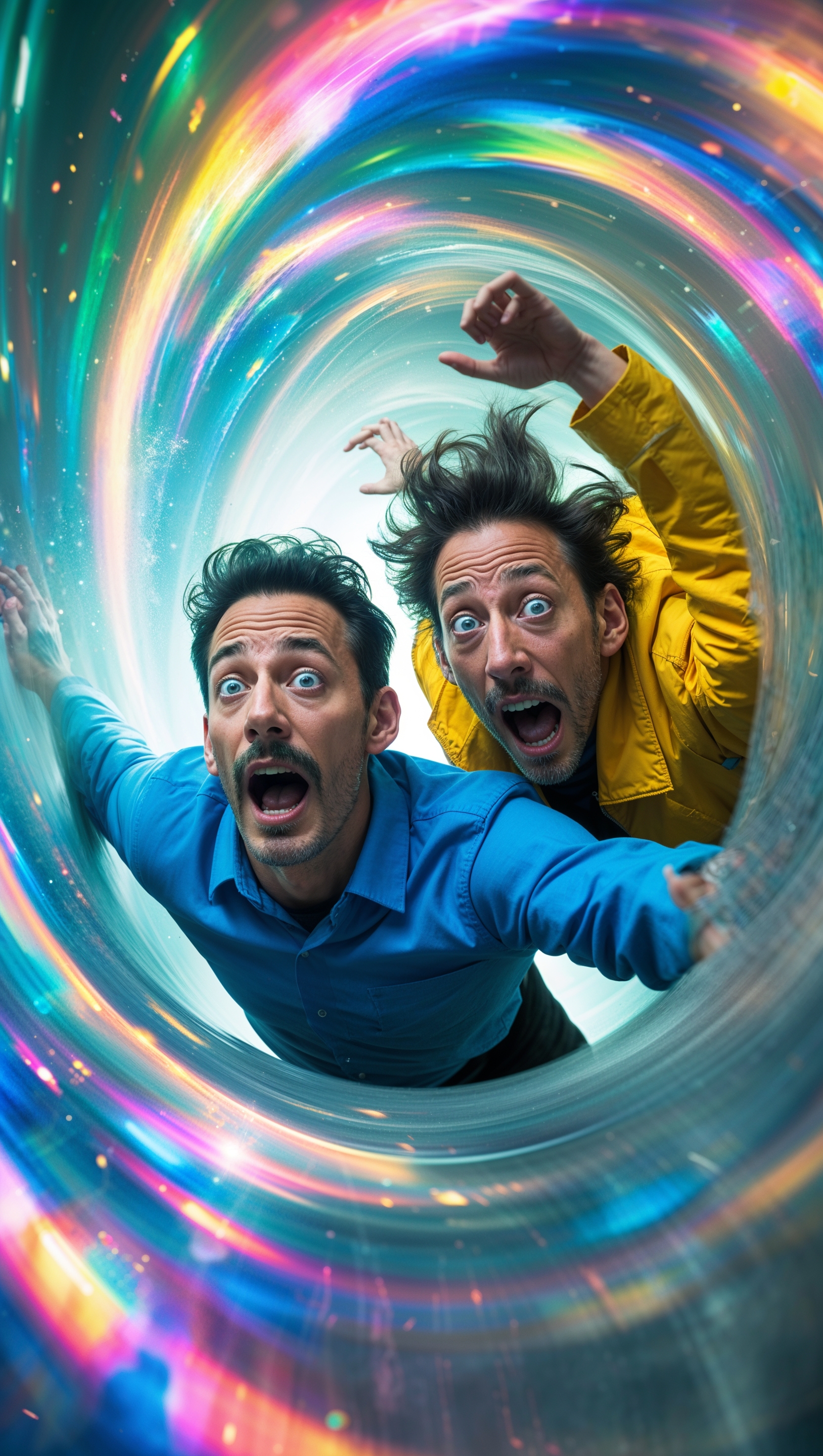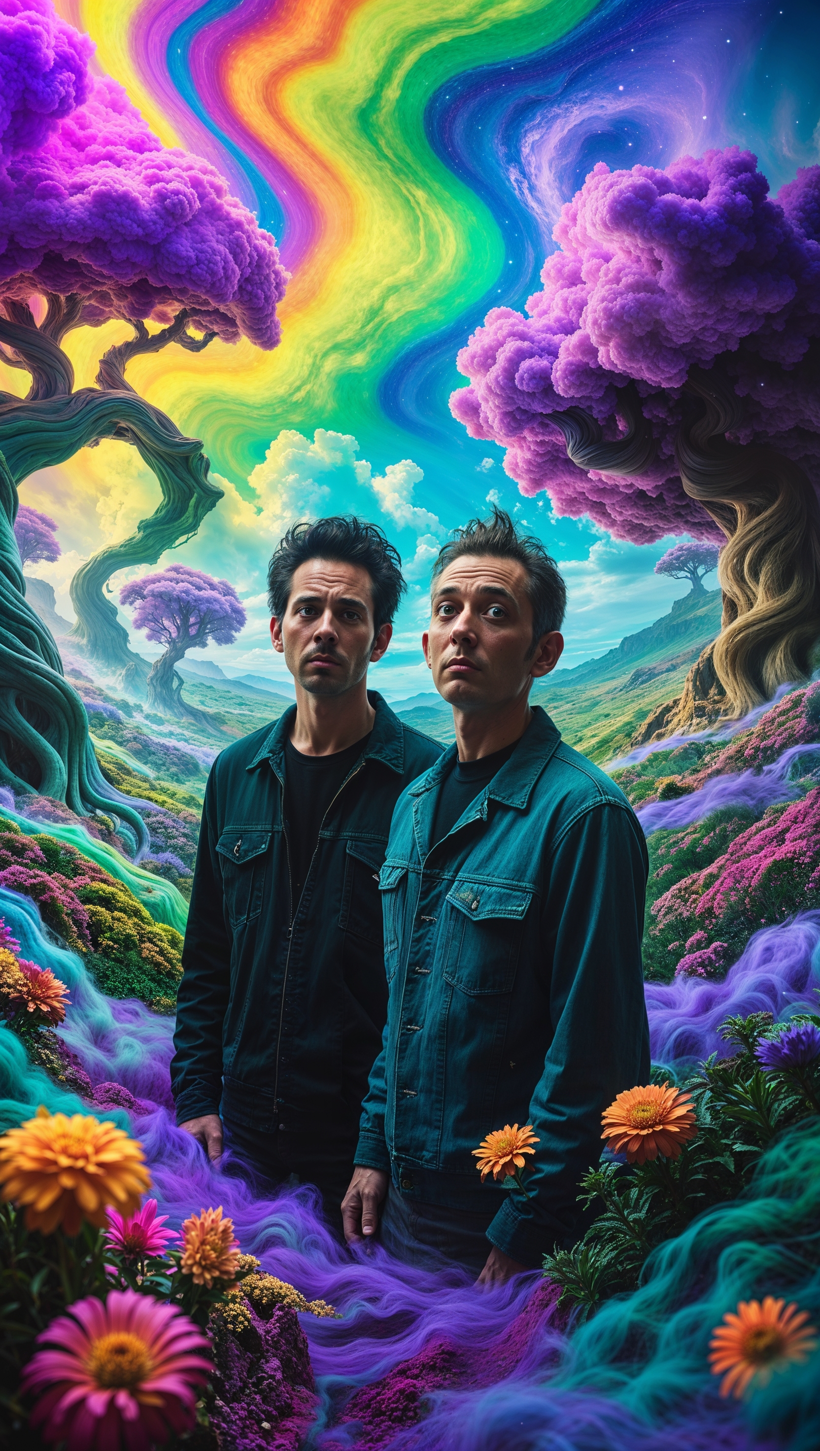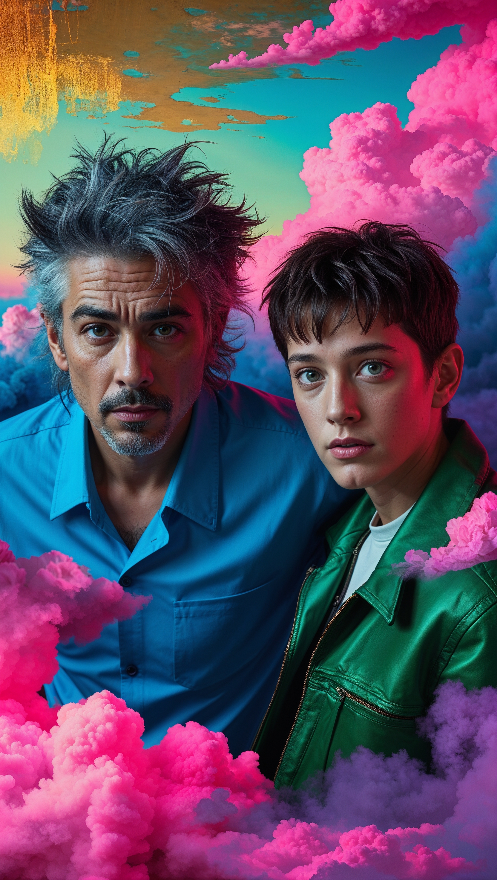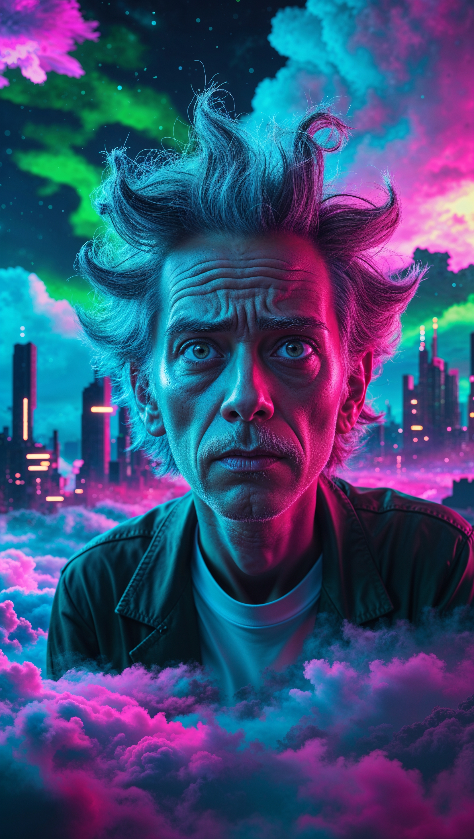 1664x2944 Rick and Morty in an acid-trip world with vivid and weird colors