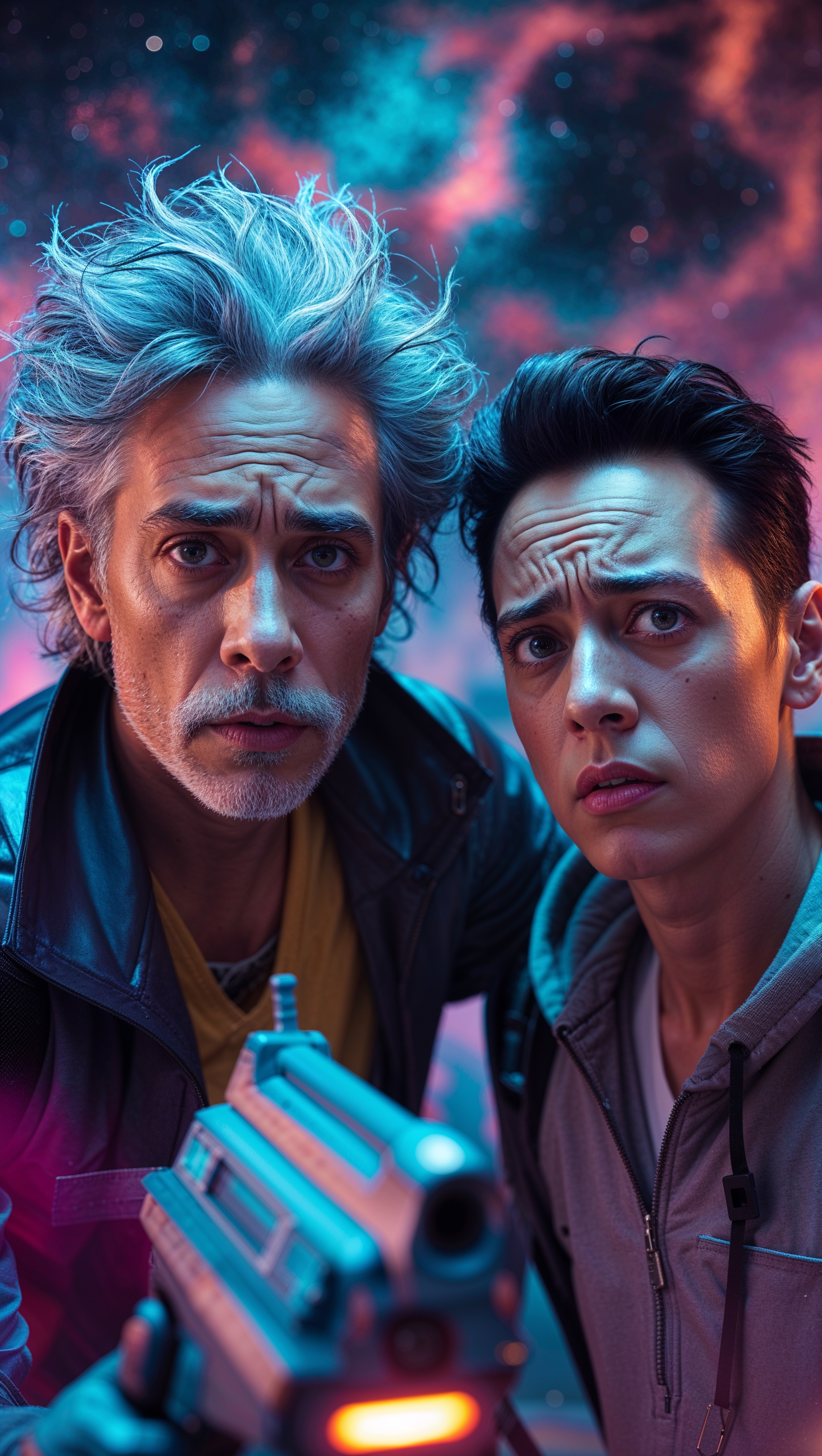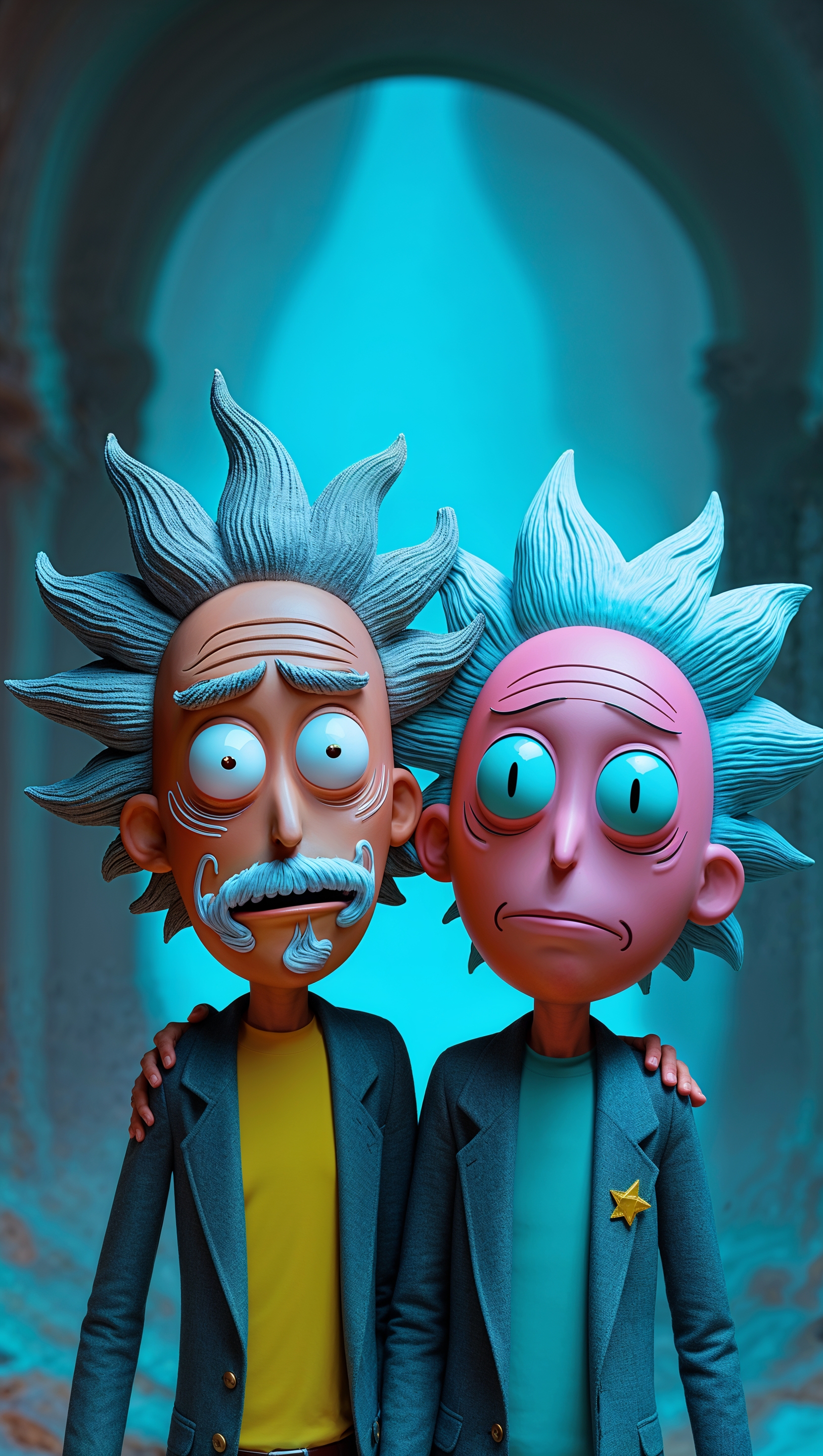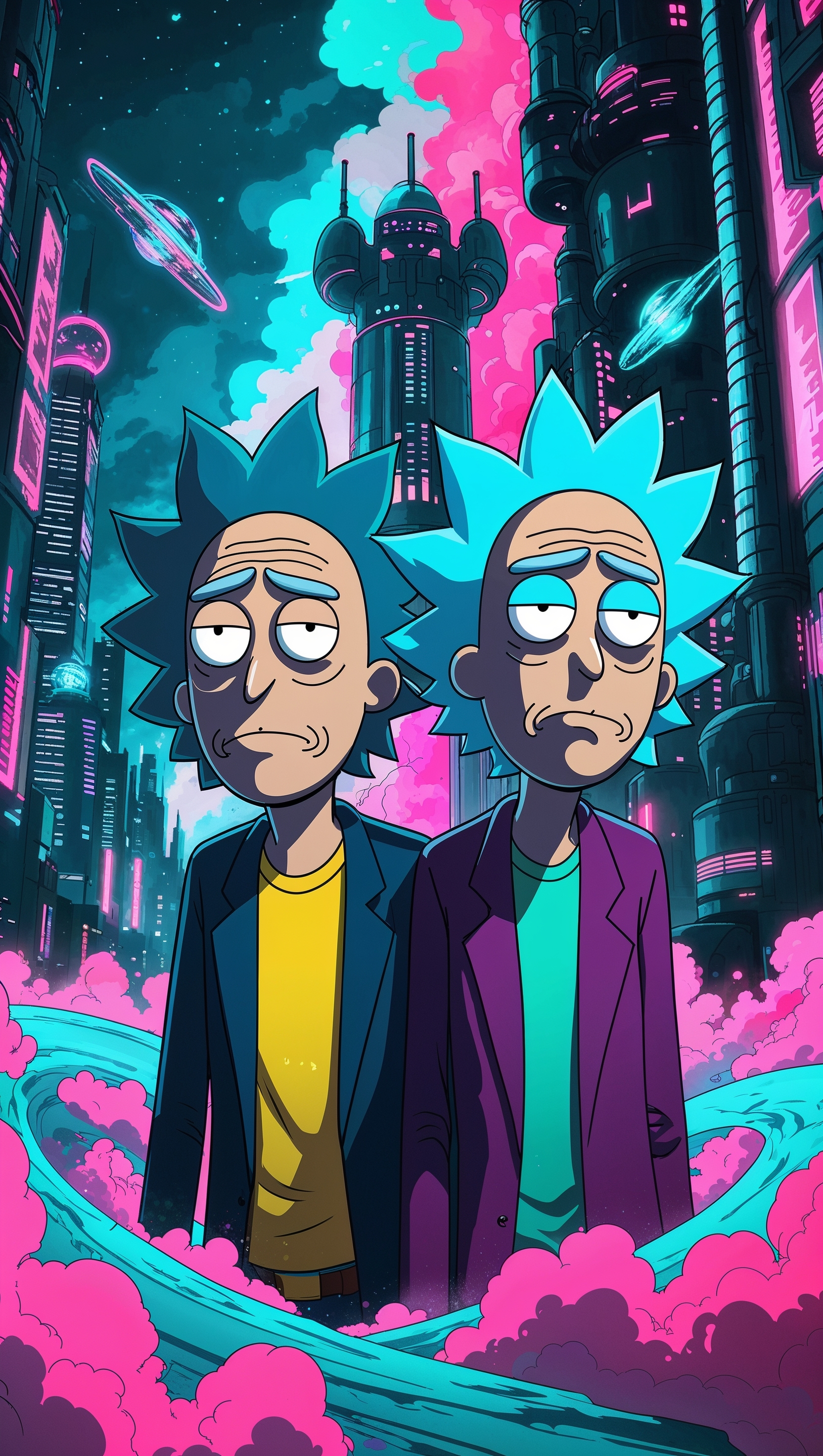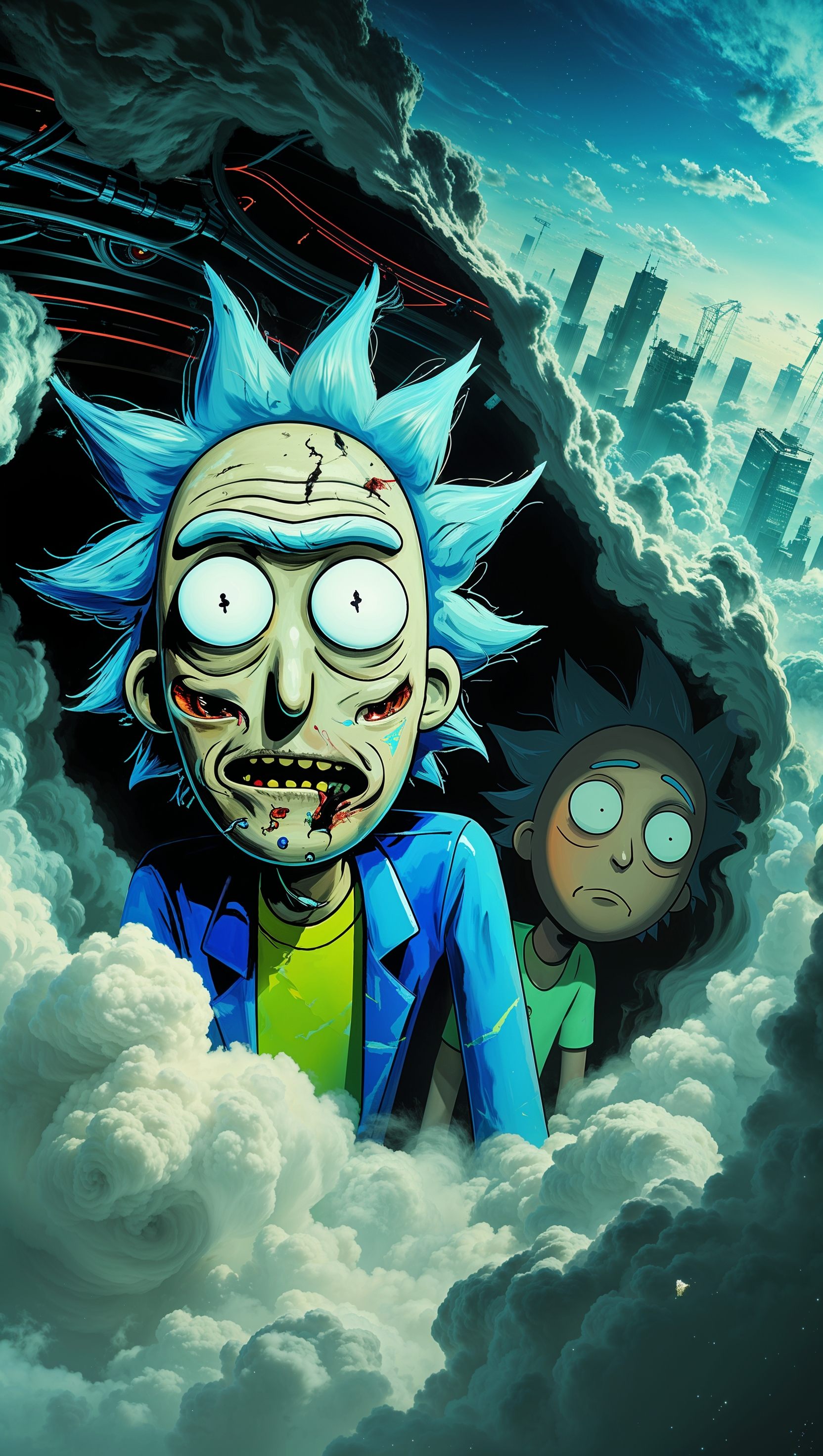 1664x2944 Rick and Morty in unknown galaxies with highly detailed design, high quality