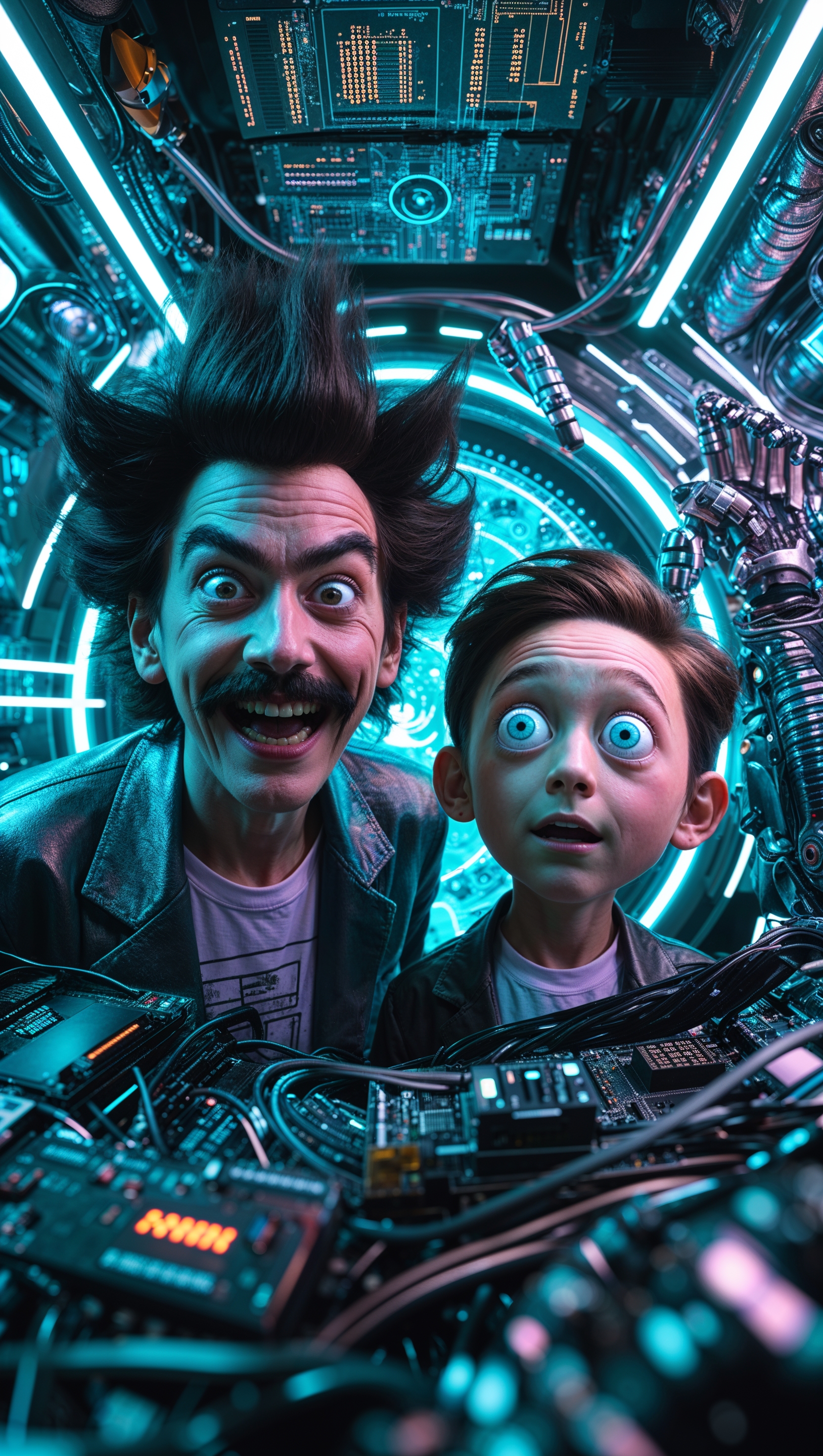 1664x2944 Rick and Morty cybernetic-themed wallpaper with advanced technology
