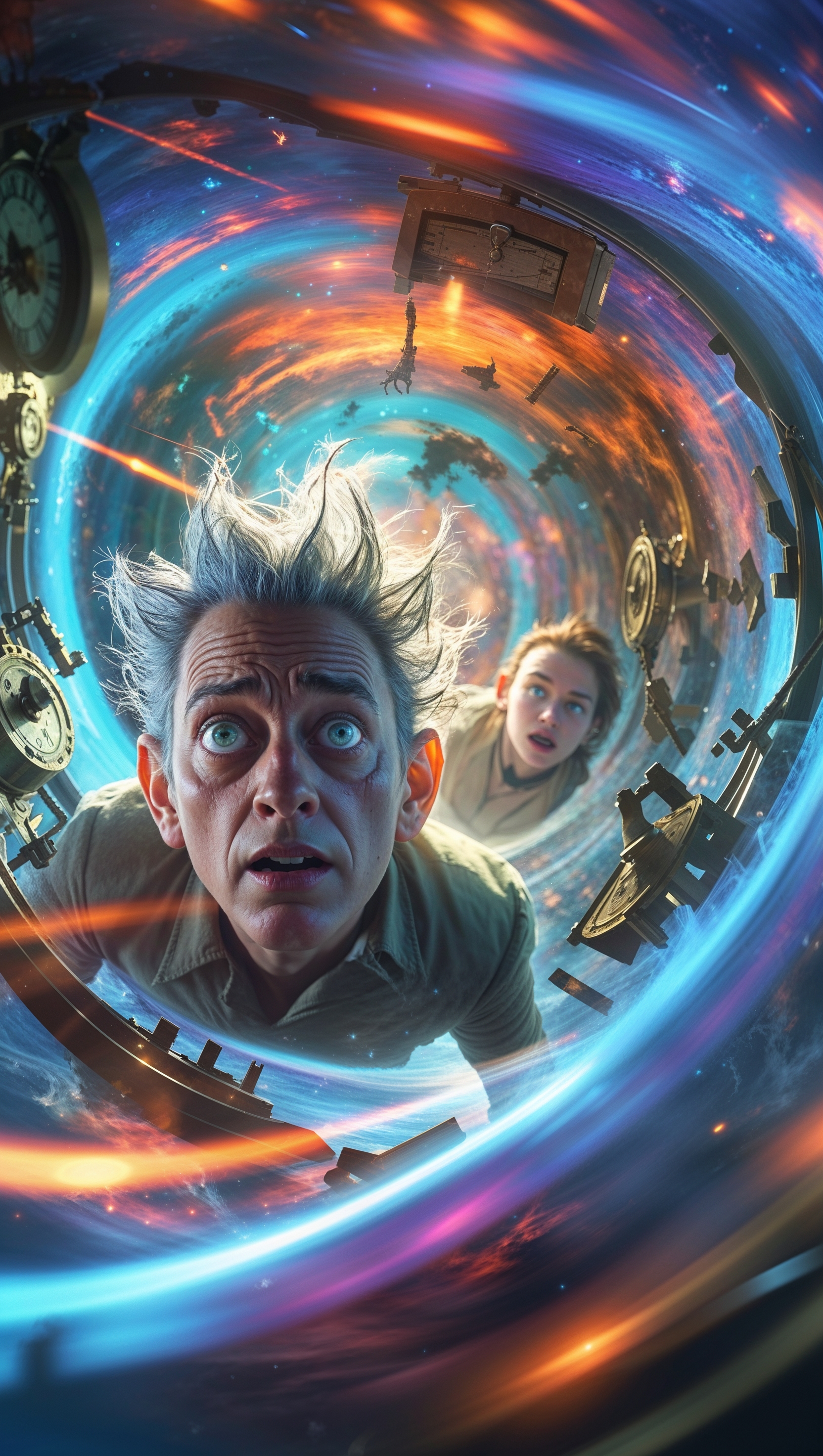 1664x2944 Rick and Morty traveling through time with special effects, 4K