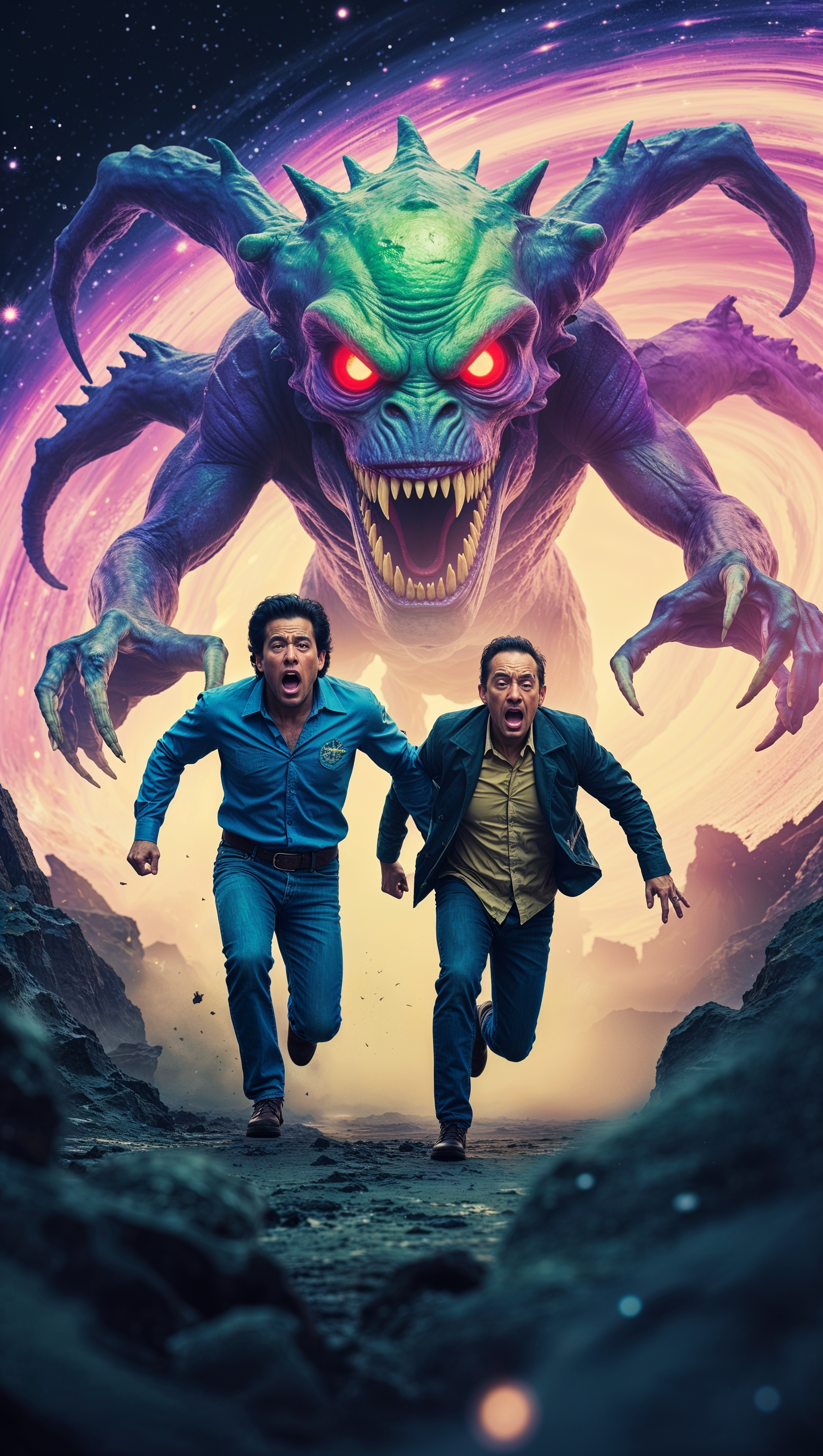 1664x2944 Rick and Morty running from a space monster, iPhone wallpaper