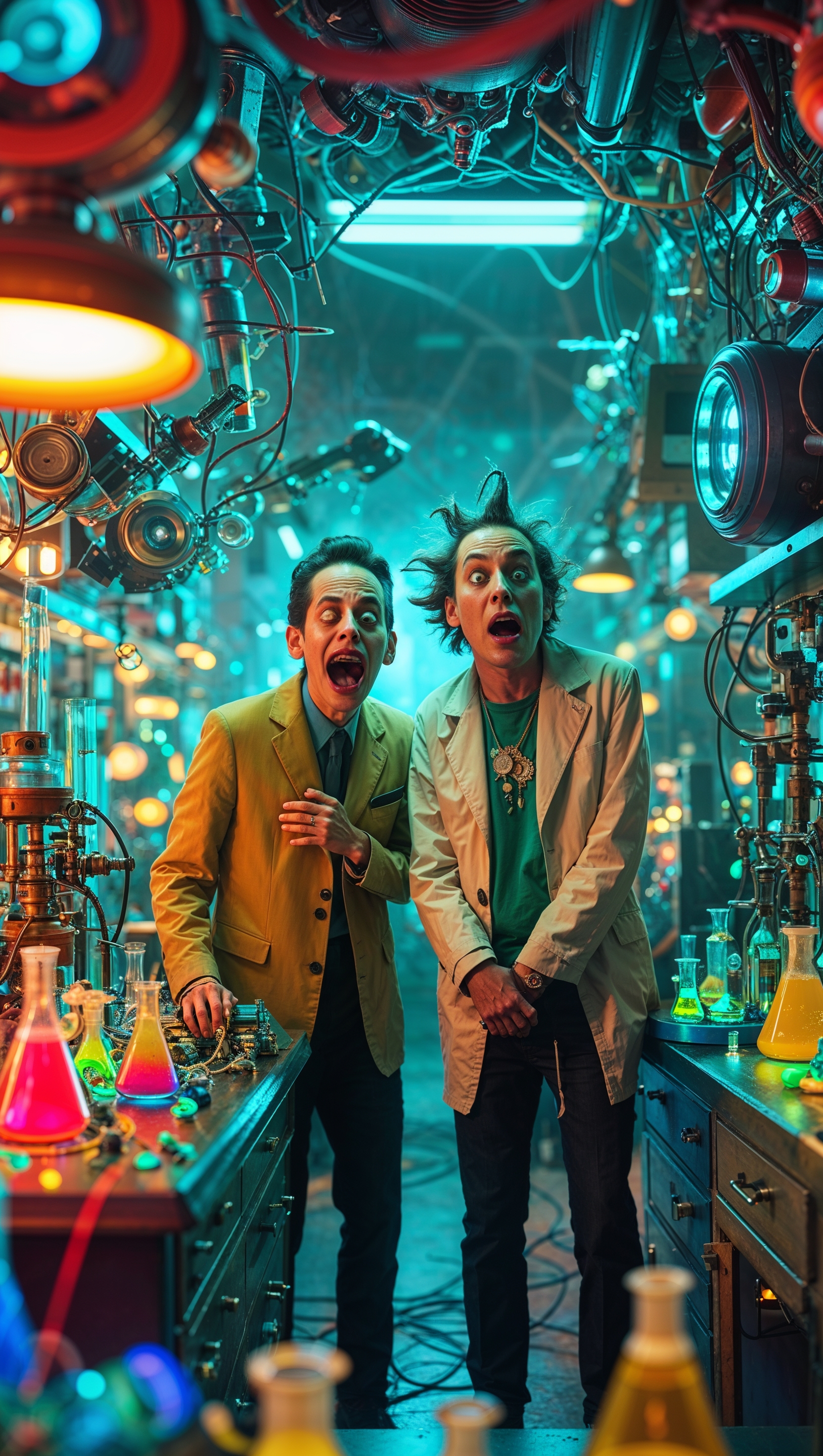 1664x2944 Rick and Morty in a science lab filled with strange gadgets
