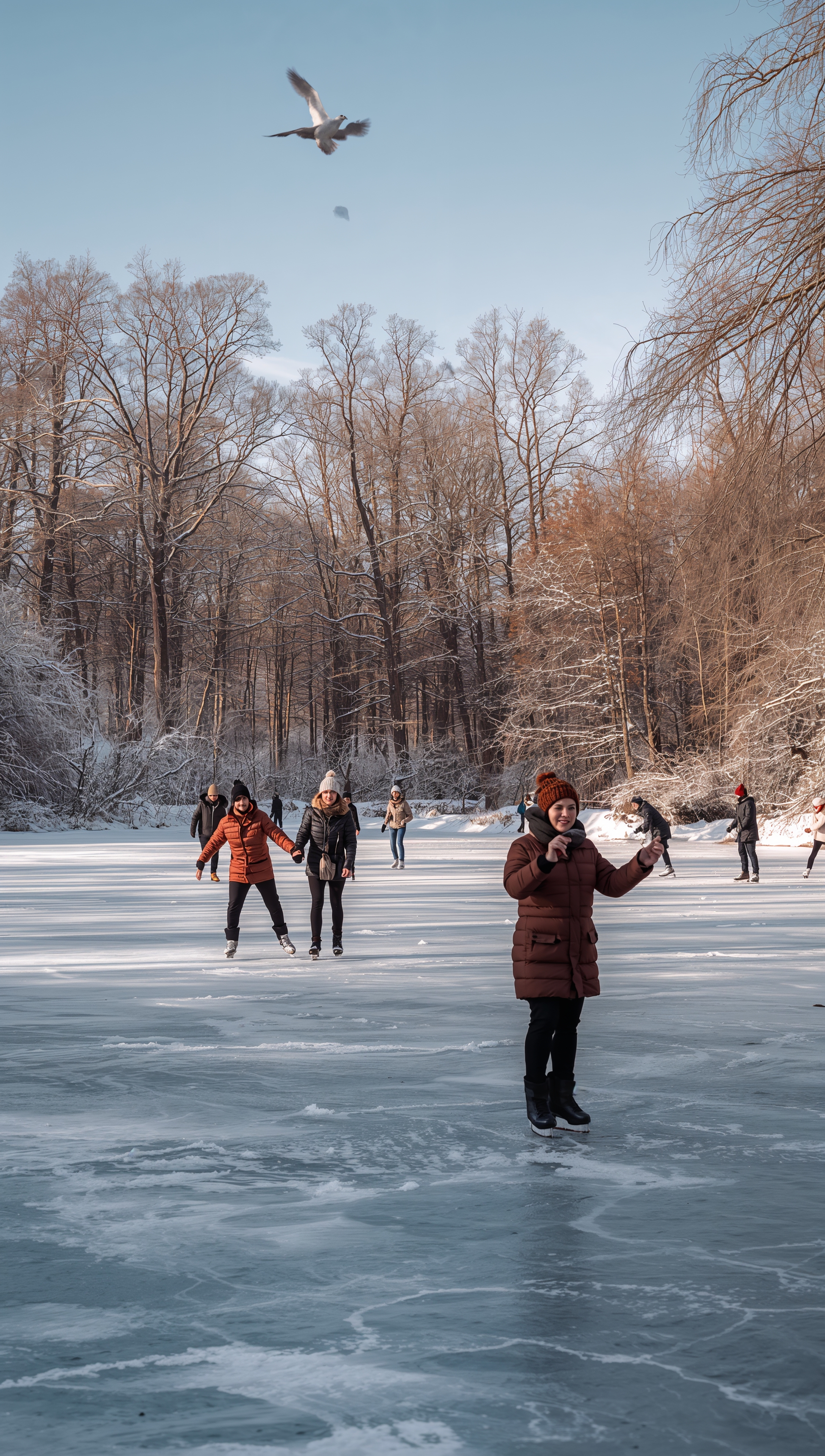 Ice skating on frozen pond – December wallpaper 2176x3840 Ice skating on frozen pond – December wallpaper