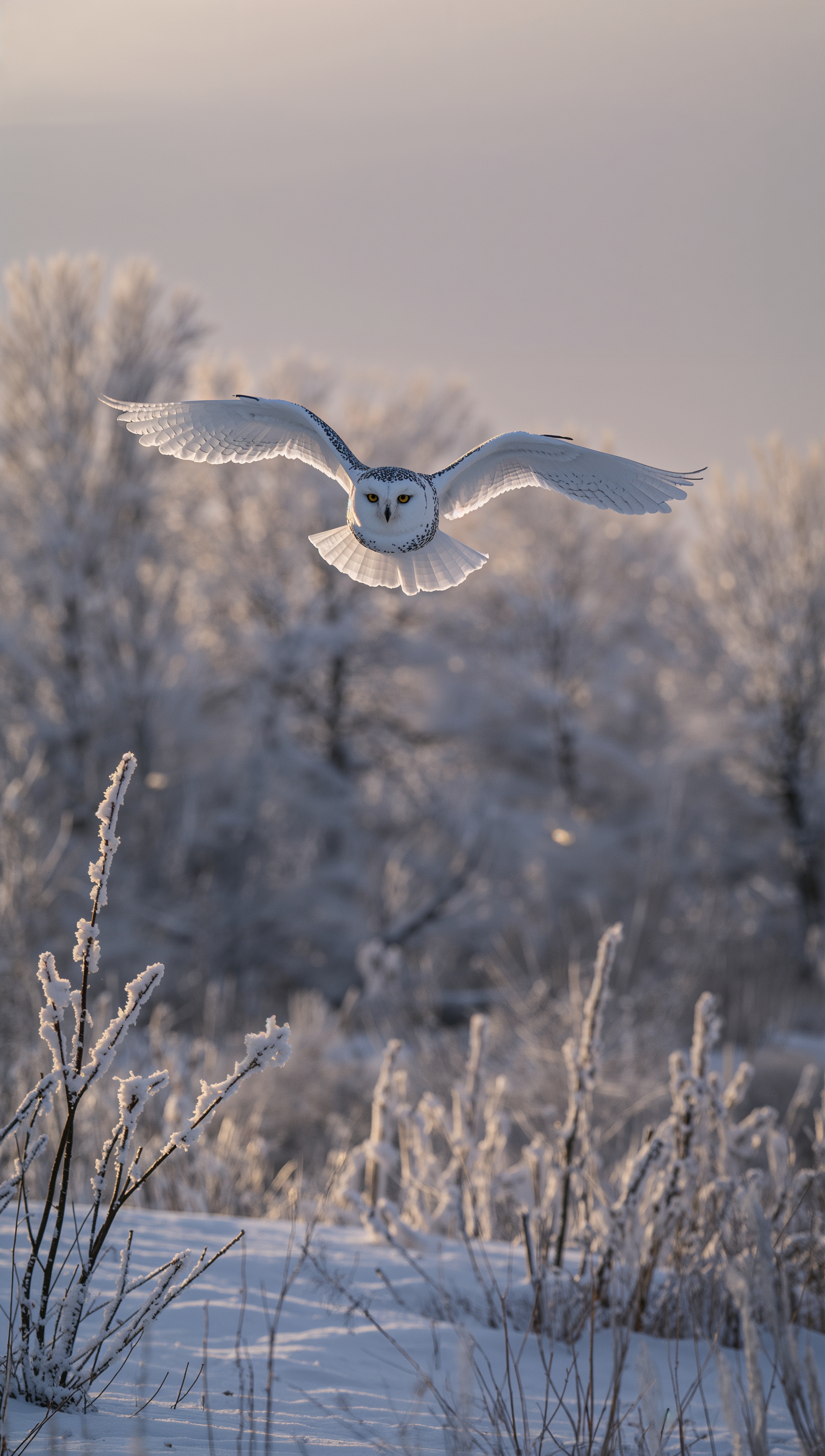 Snowy owl in forest – December wallpaper 2176x3840 Snowy owl in forest – December wallpaper