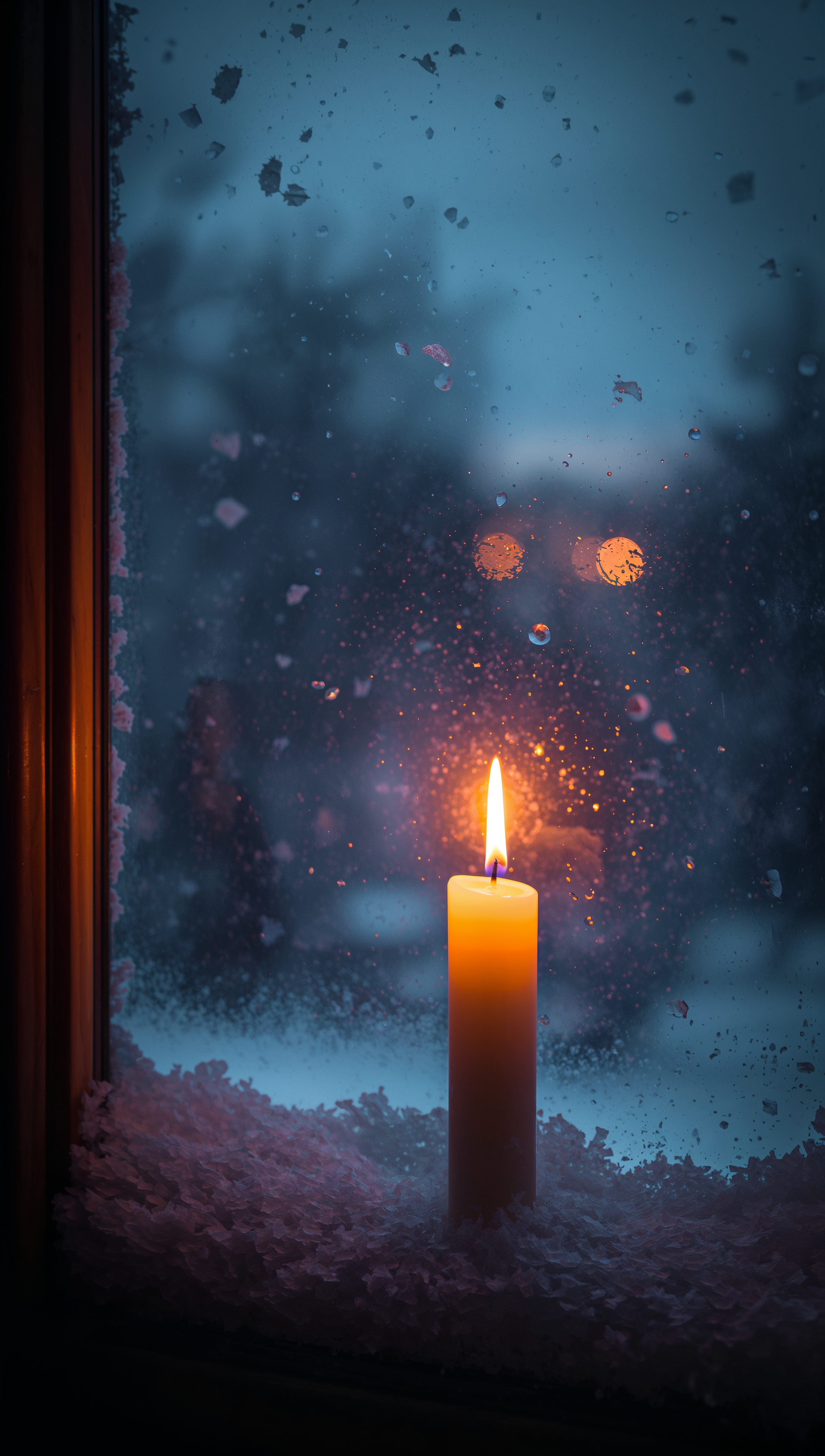 Candlelight in snowy window – December wallpaper 2176x3840 Candlelight in snowy window – December wallpaper