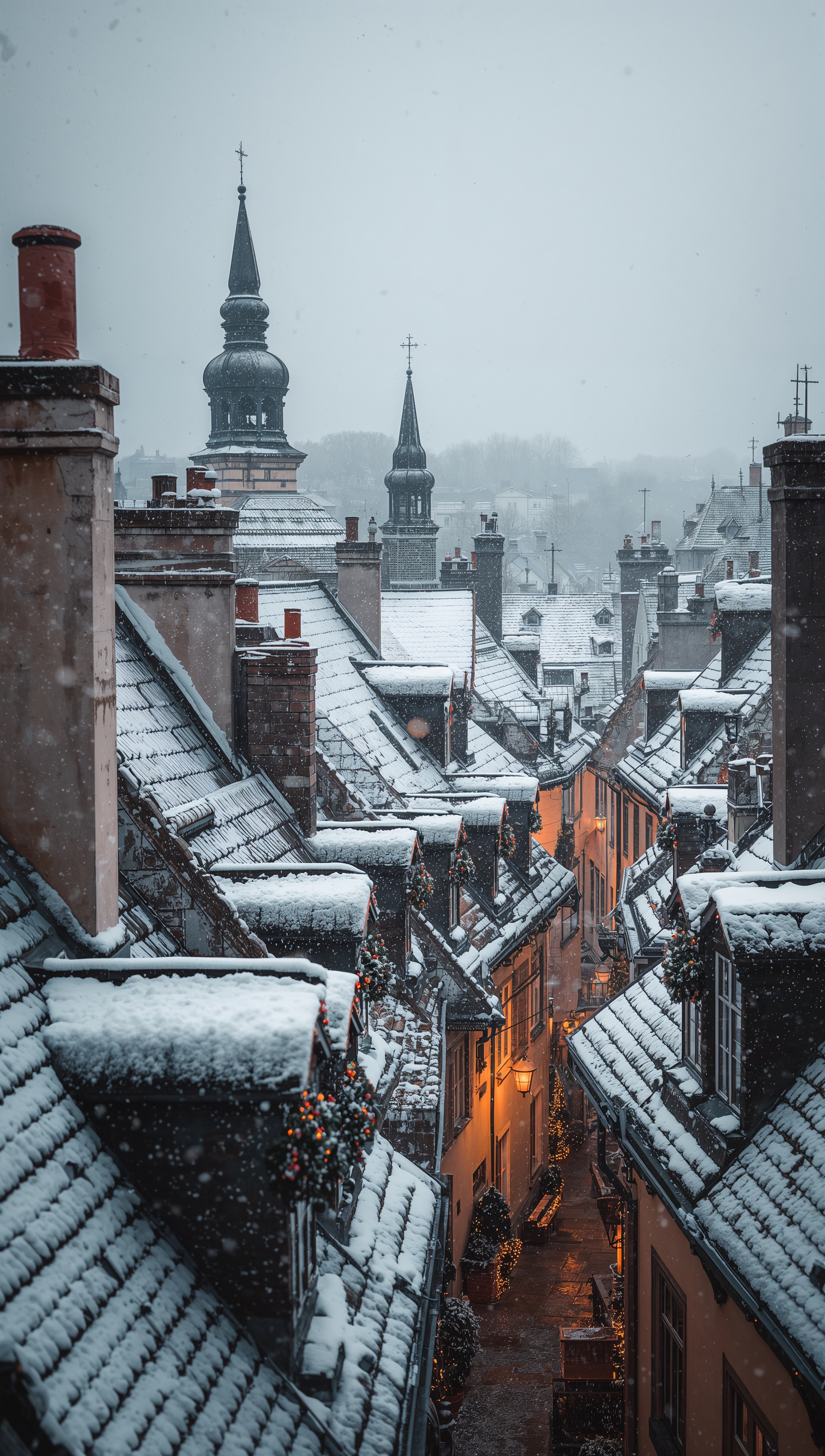 Snowy rooftops old town – December wallpaper 2176x3840 Snowy rooftops old town – December wallpaper