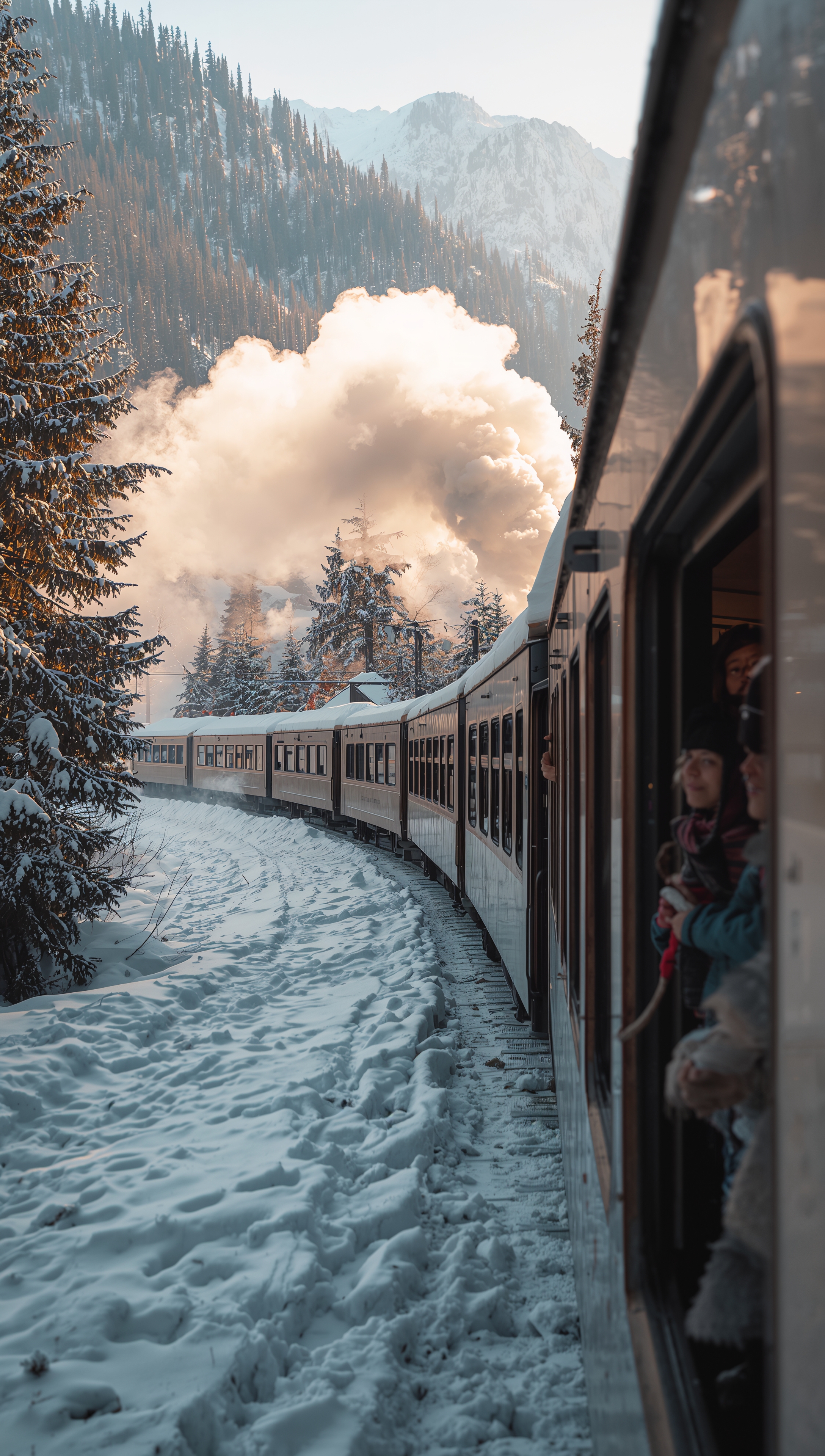 Train in snowy valley – December wallpaper 2176x3840 Train in snowy valley – December wallpaper