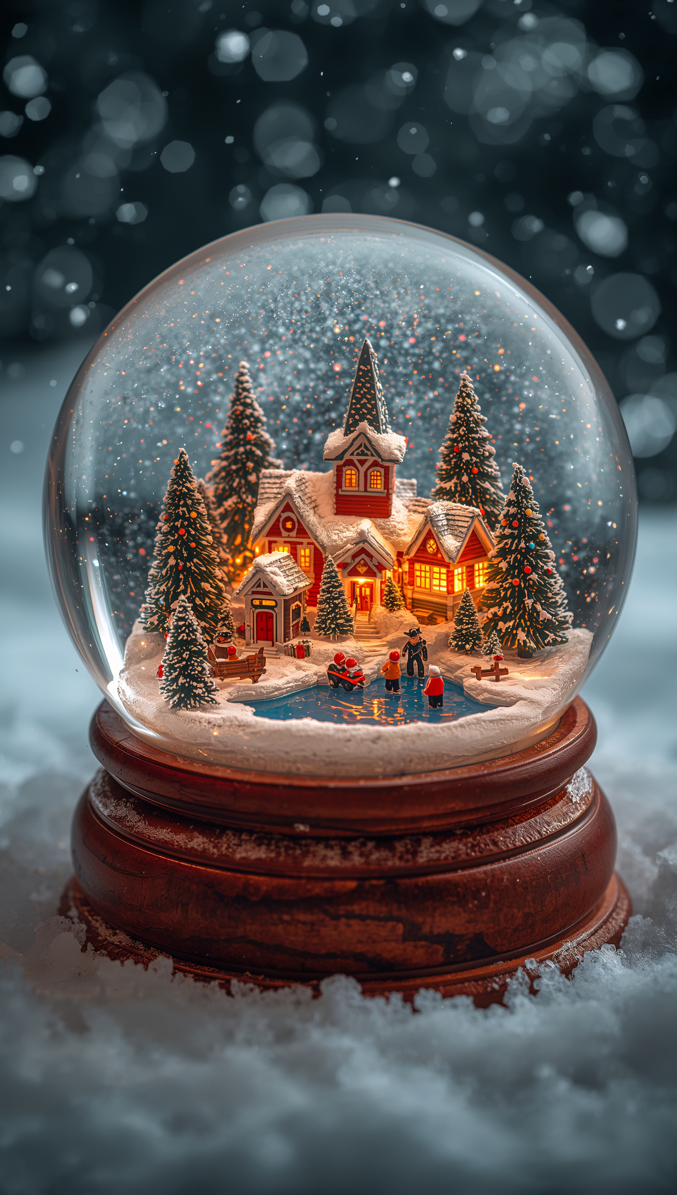 Snow globe winter town – December wallpaper 2176x3840 Snow globe winter town – December wallpaper