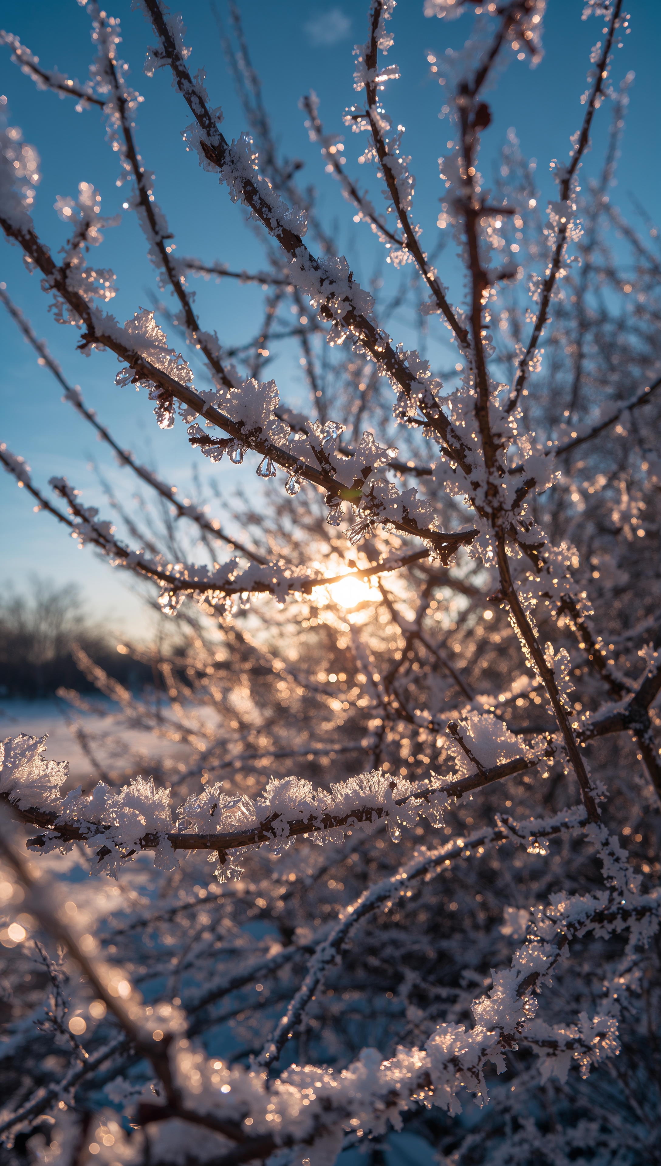 Frost on tree branches – December wallpaper 2176x3840 Frost on tree branches – December wallpaper