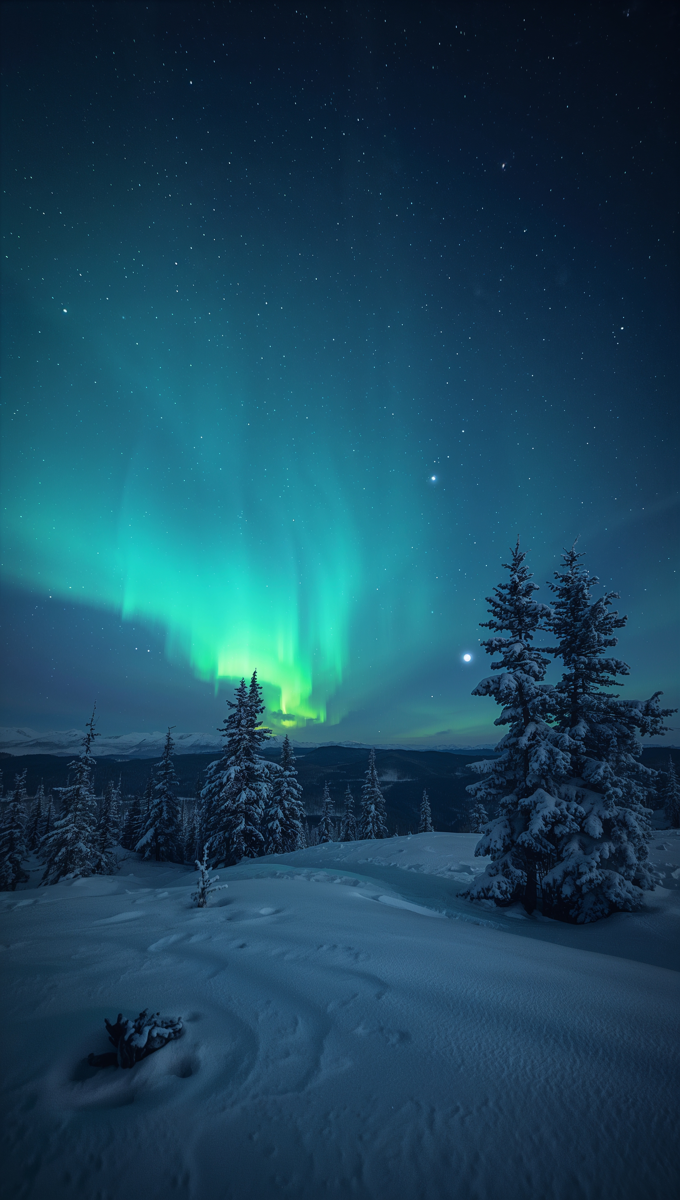 Northern lights in December sky – December wallpaper 2176x3840 Northern lights in December sky – December wallpaper