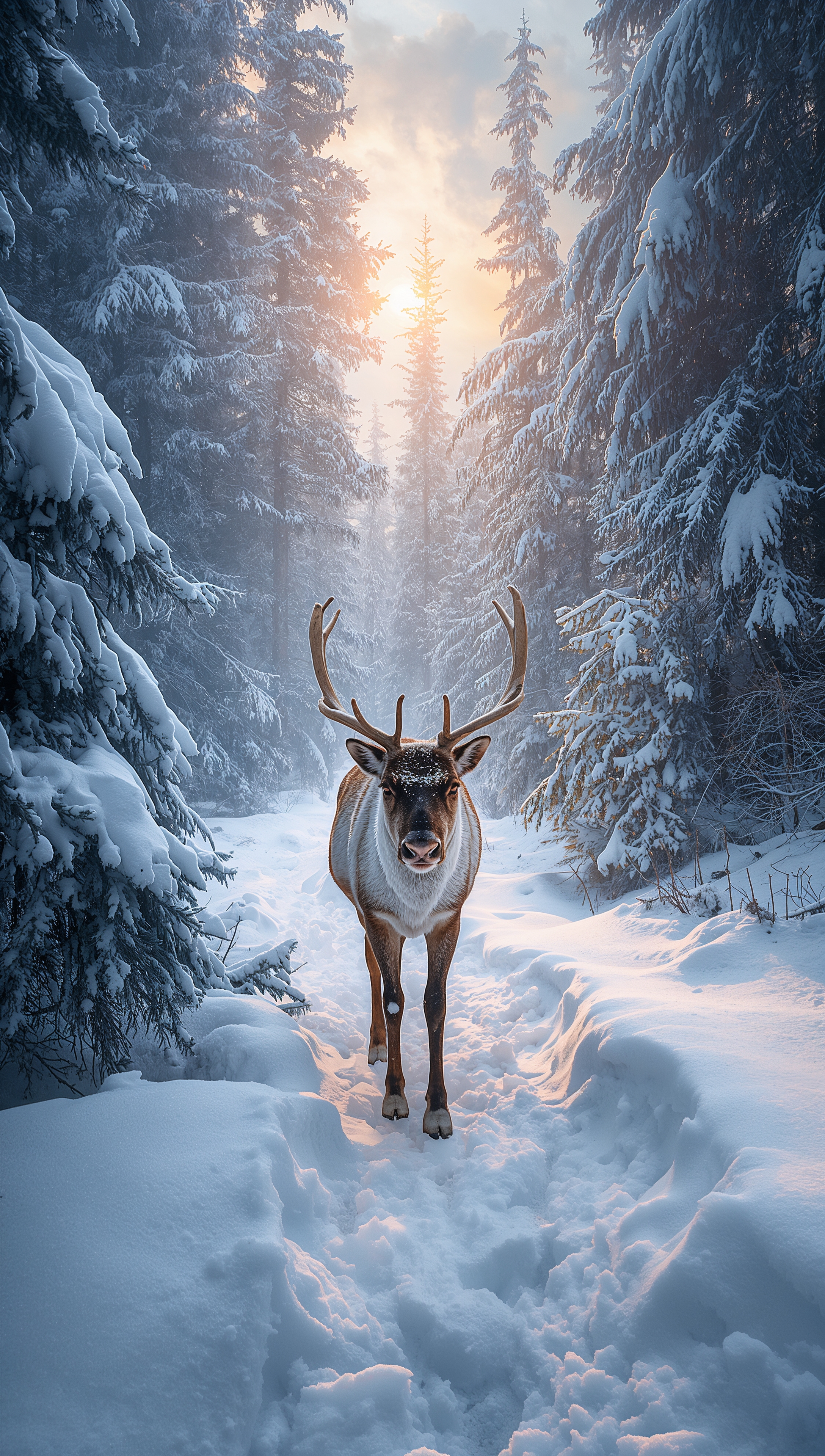 Reindeer in snowy forest – December wallpaper 2176x3840 Reindeer in snowy forest – December wallpaper