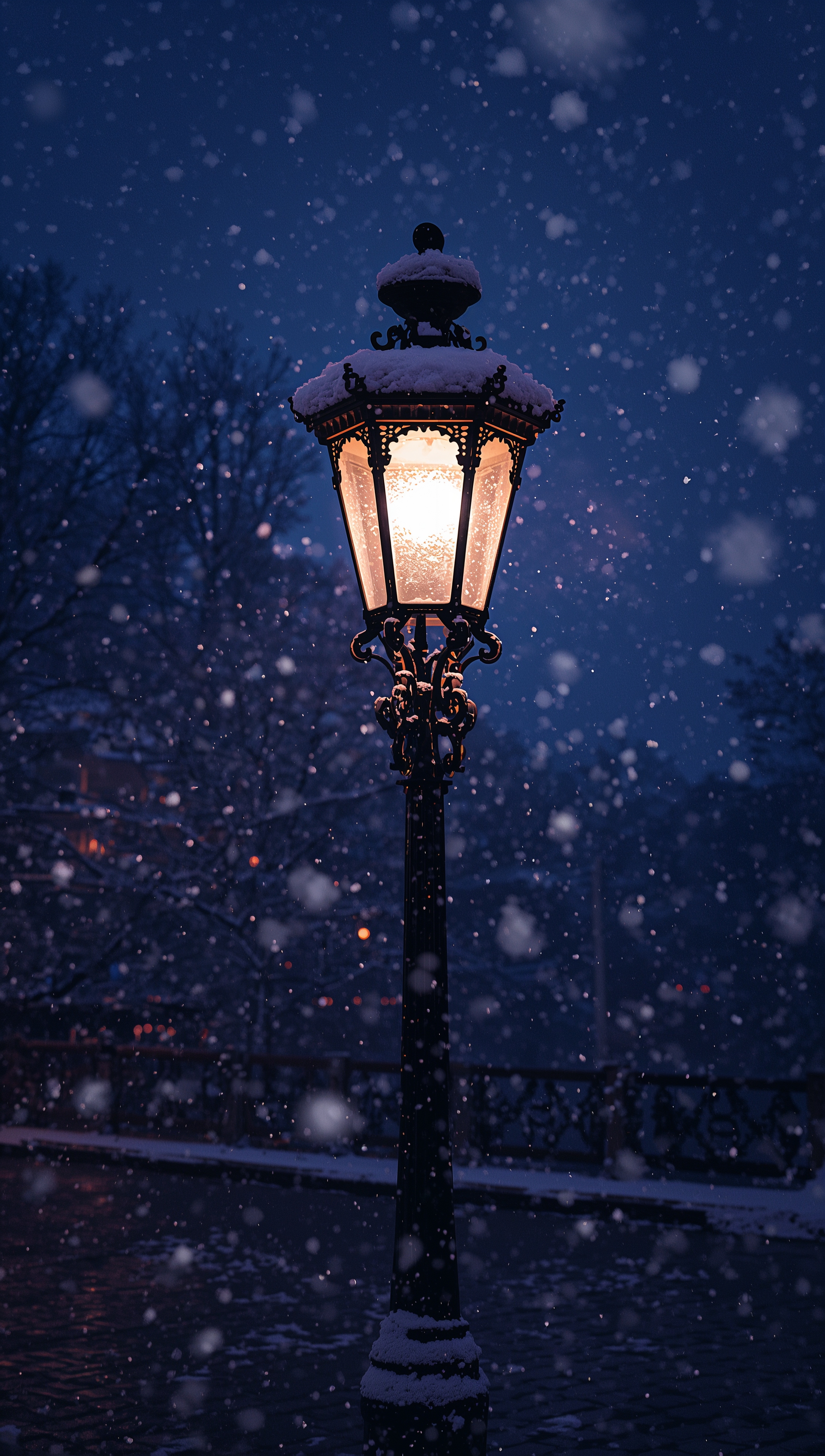 Snow on vintage street lamp – December wallpaper 2176x3840 Snow on vintage street lamp – December wallpaper