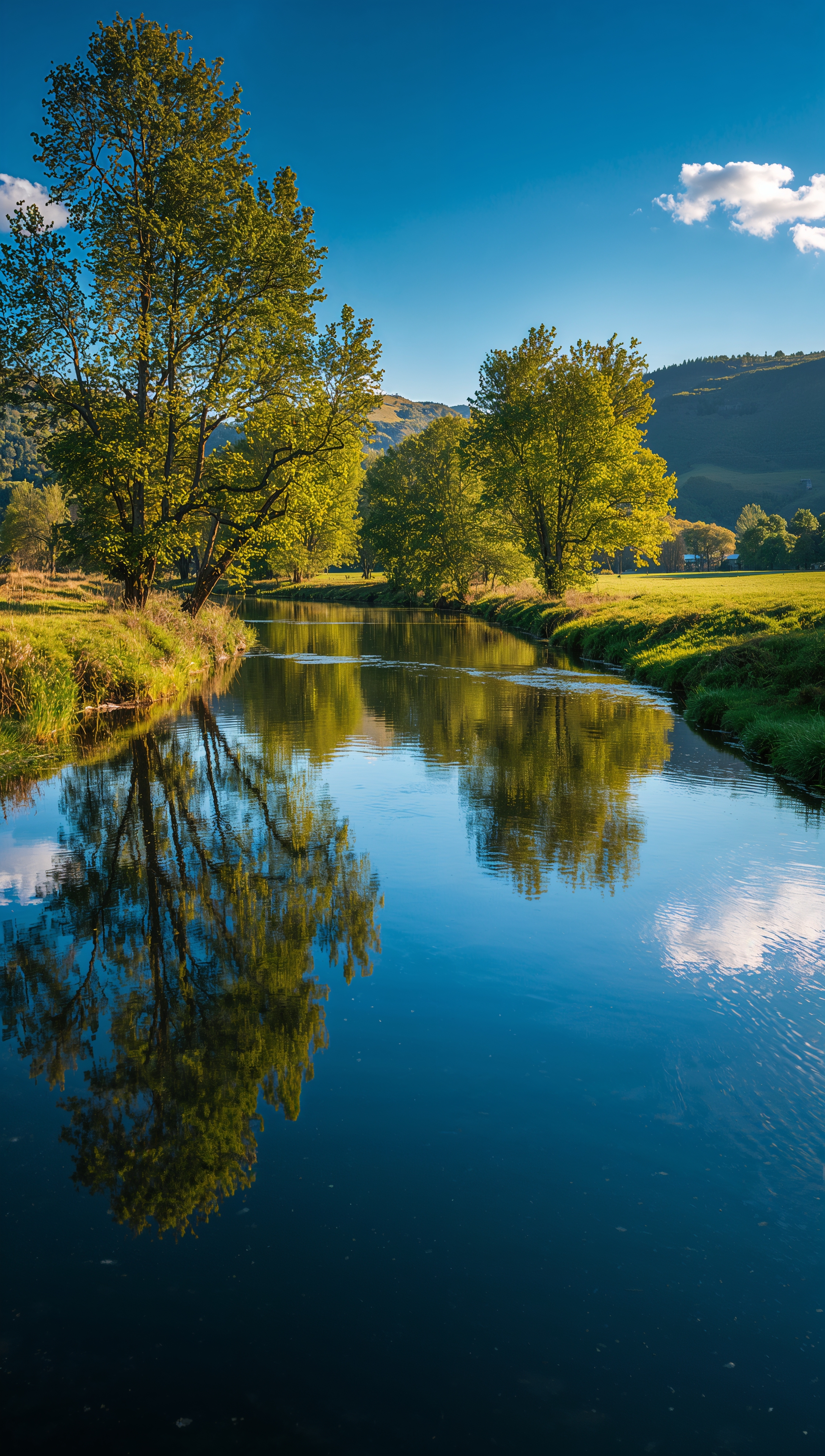 Country river iPhone wallpaper – calm nature reflection 2176x3840 Country river iPhone wallpaper – calm nature reflection
